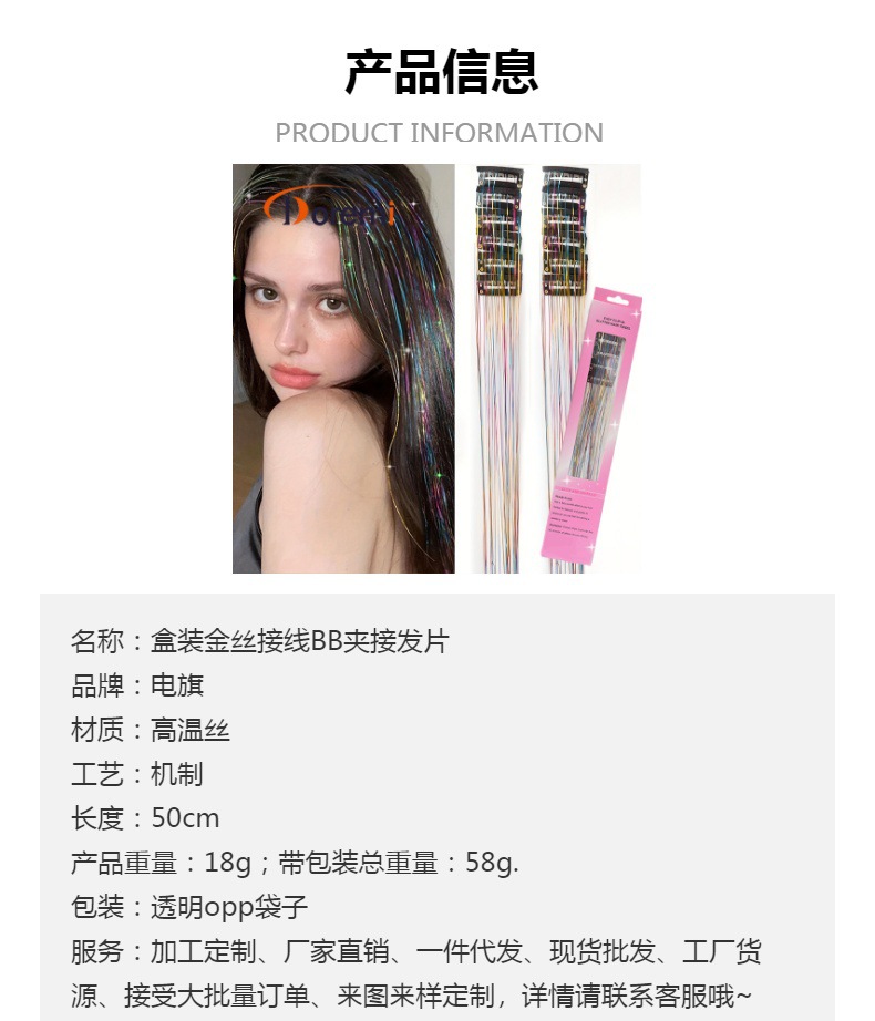 欧米の国境を越えた12本のbbクリップレーザー金糸が輝く金属糸がかつらをつないでいるtinsel hair