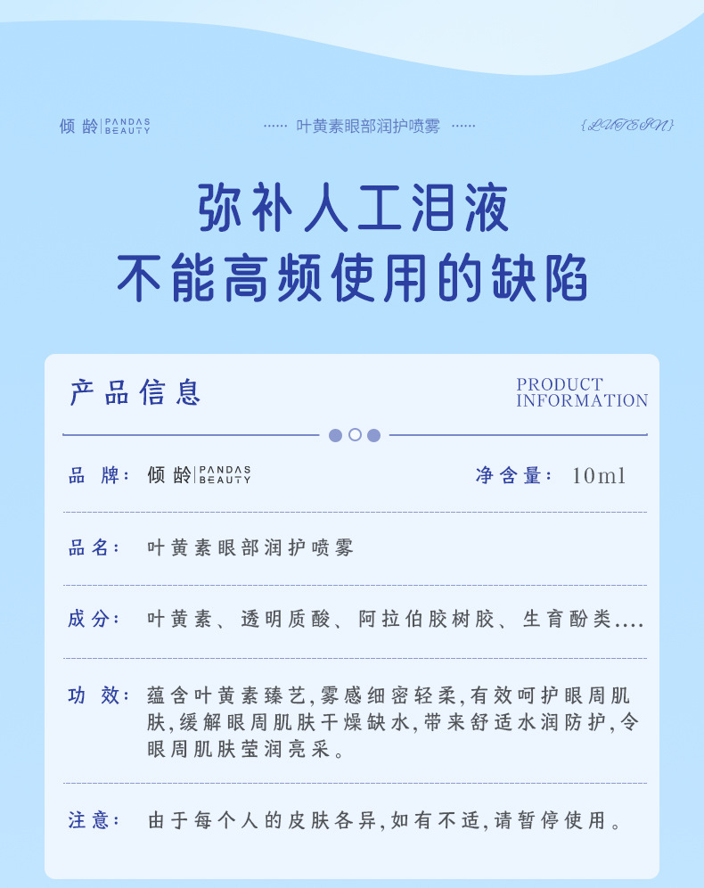 製品仕様 チンリン ルテイン アイモイスチャライジング スプレー