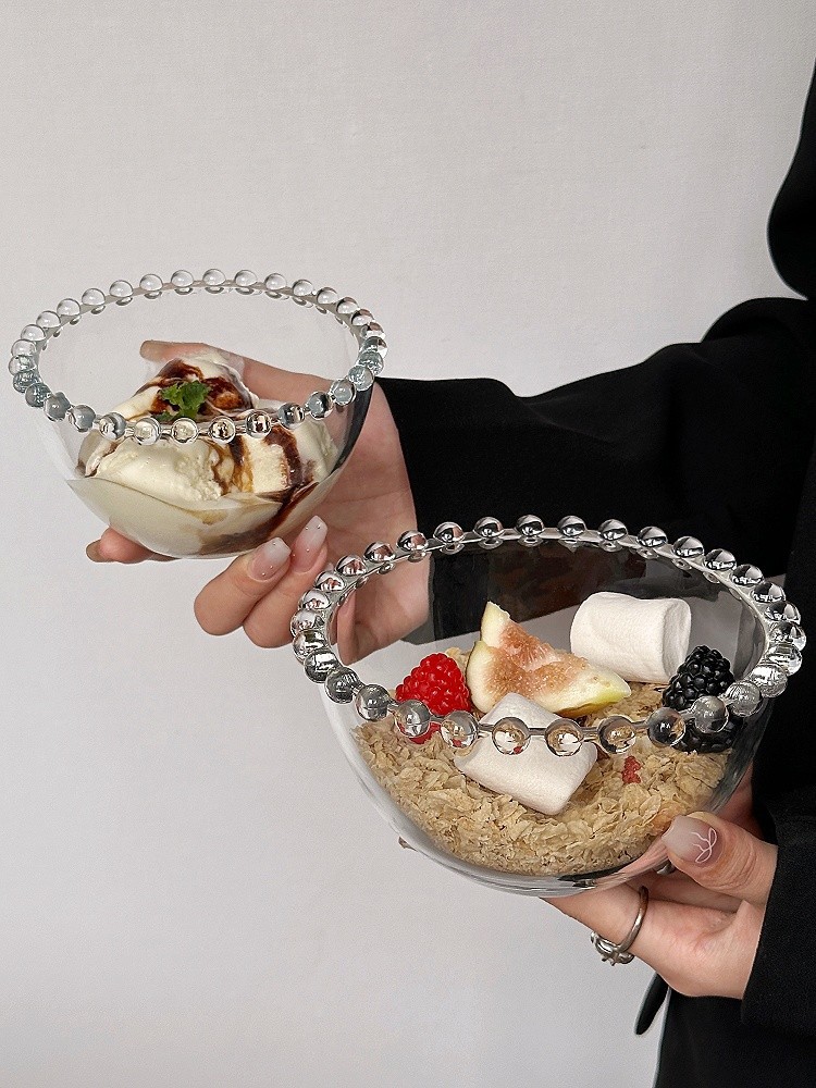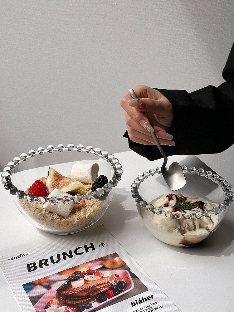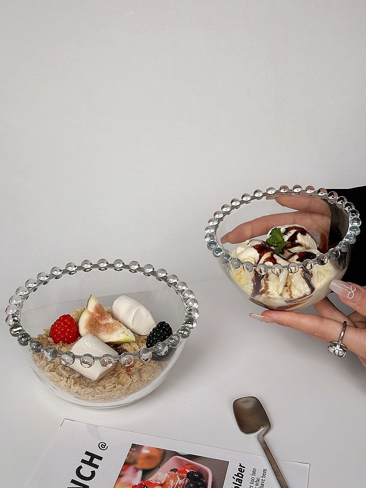 ~珍珠边玻璃燕麦酸奶碗冰淇淋雪糕碗早餐水果沙拉甜品碗 推荐 推荐~