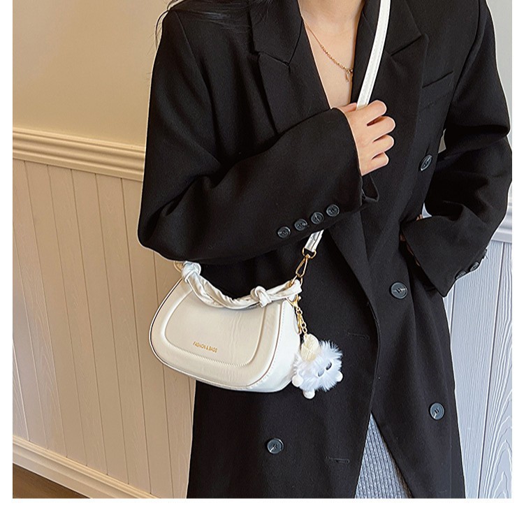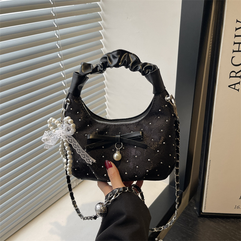 手提包包女2026夏季新款小众设计链条斜挎包褶皱饺子包上班小拎包