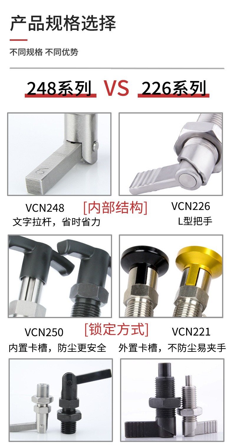 锐通精密 RT247 フランジハンドル L型セルフロックノブ ピストン左右回転ピストン 工場ZAUインデックスピン