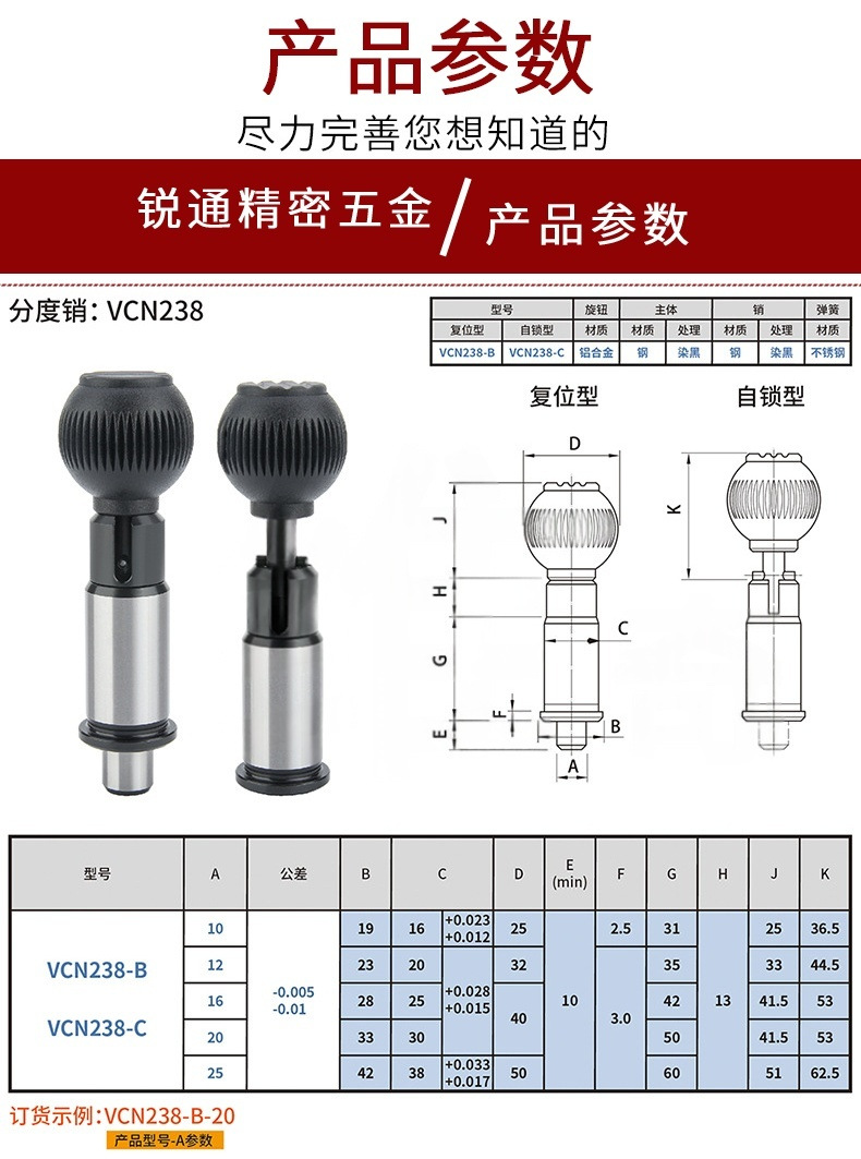 PMXSR PXSR太さ歯スイッチ型割出しピンVCN248セルフロックスプリング位置決めピンノブプランジャ