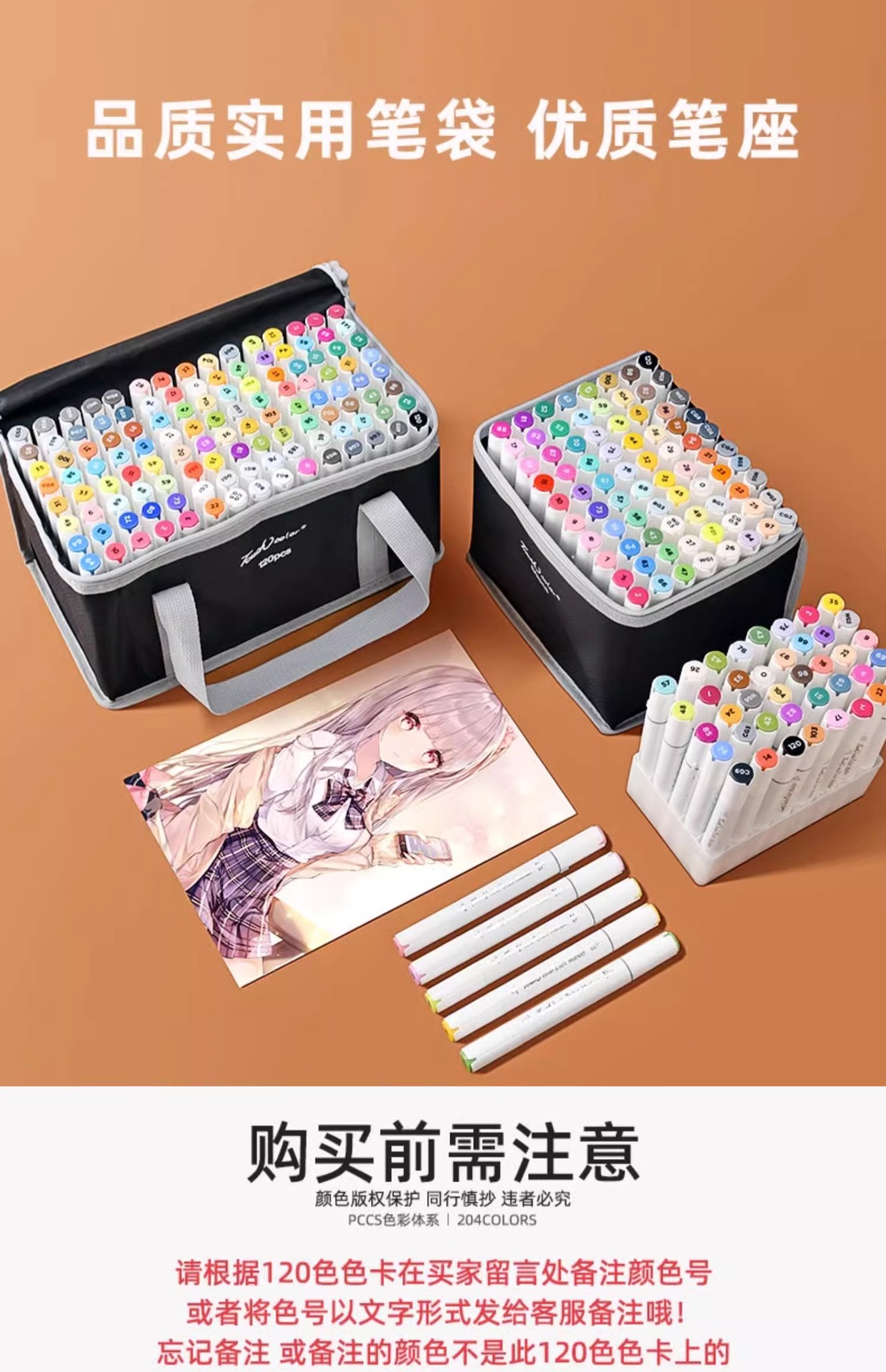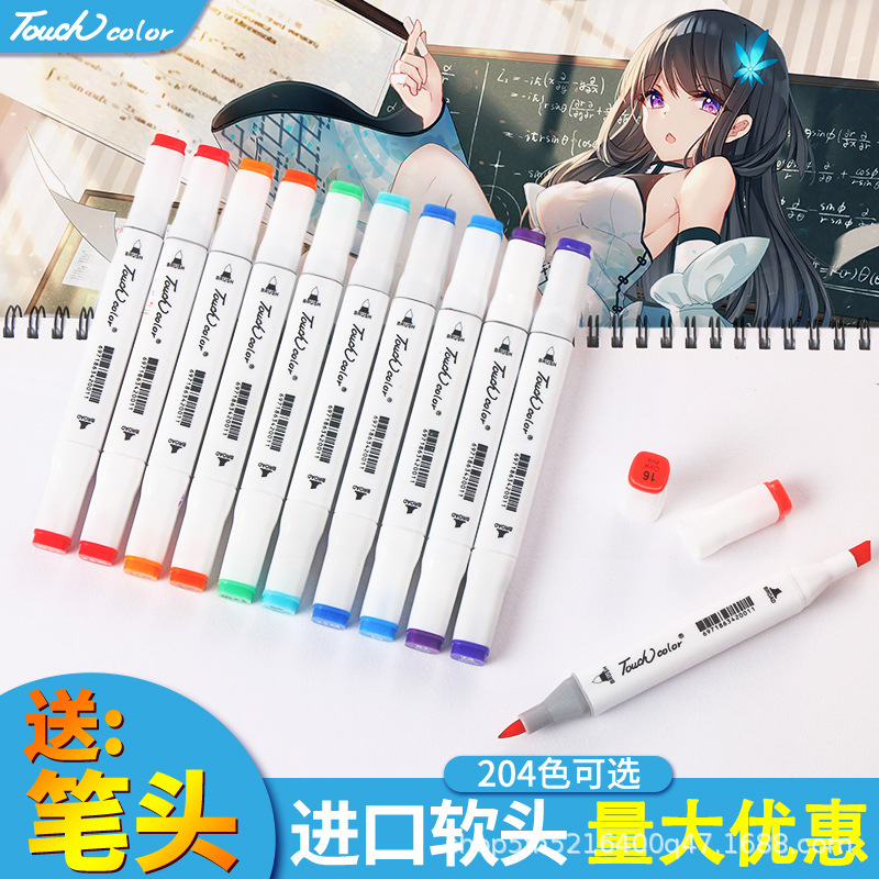 タッチカラーソフトヘッドマーカーペンシングルオプション学生アニメーションアルコール油性双頭ペンフルセット 204 色