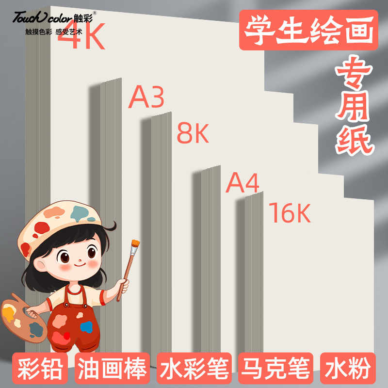 Touch color絵画紙児童美術学生専用8k厚手絵画紙4 a 4白紙スケッチ落書き