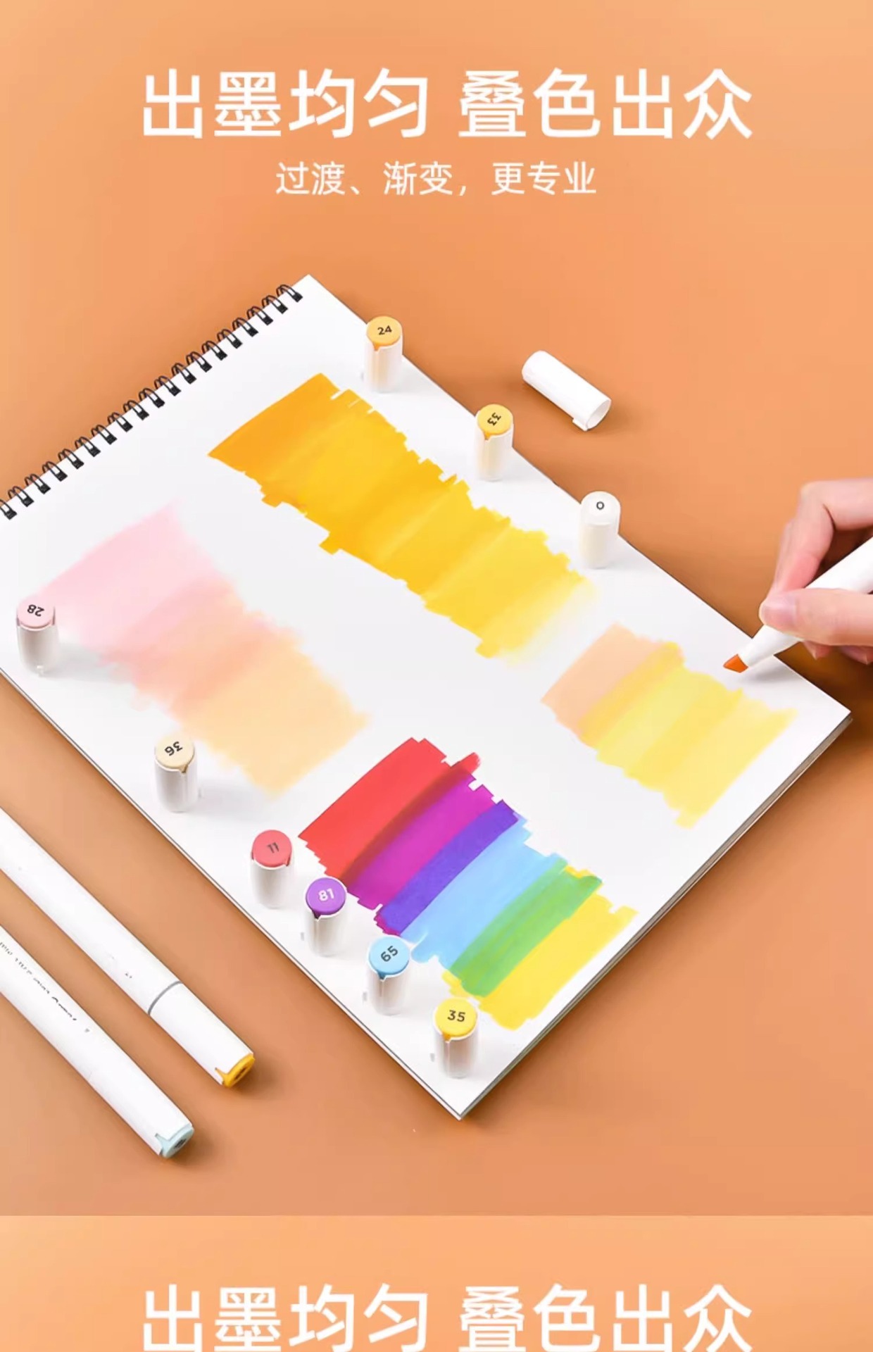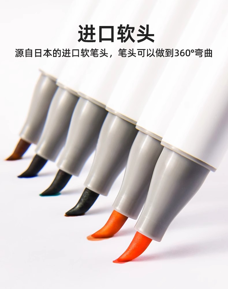 油性马克笔软头美术绘画标准色系80色套装双头学生酒精油性马克笔