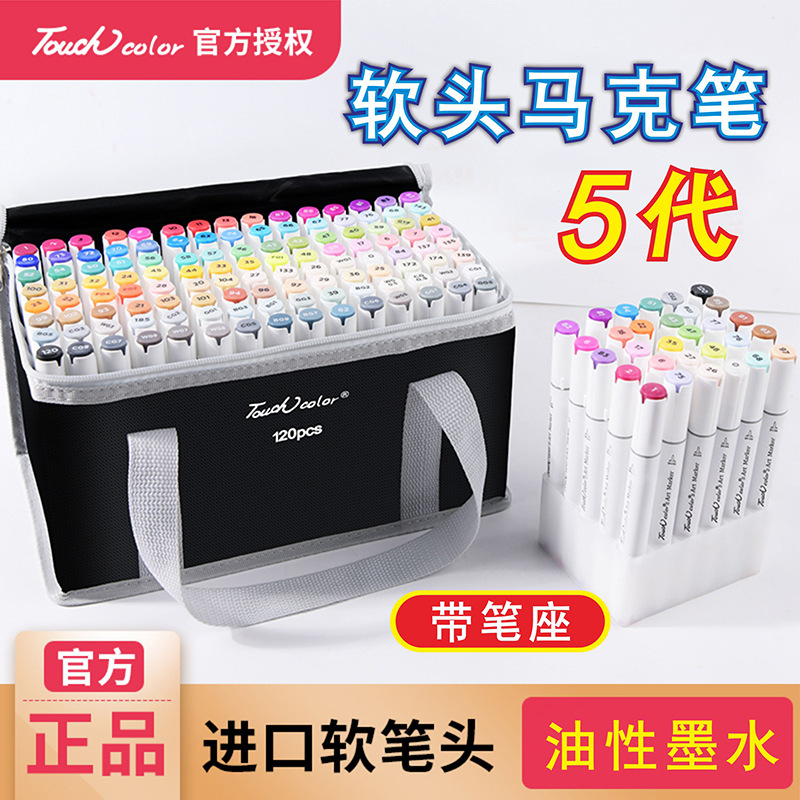 タッチカラー5代ソフトヘッドマークペンセット美术生専用アルコール油性ダブルヘッド水彩ペン120色