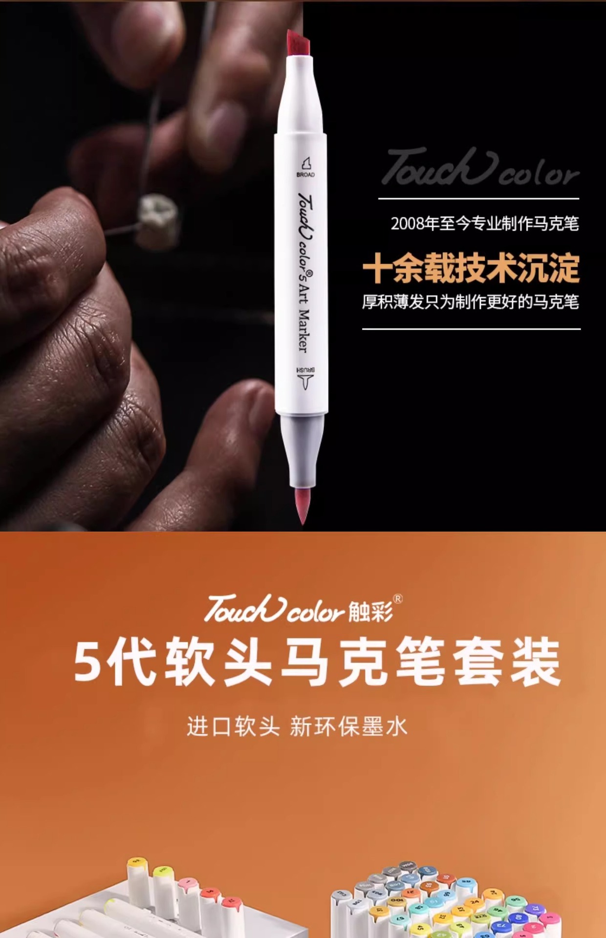 Touch new六世代ソフトヘッドダブルヘッドマークペンカラーソース工場絵画油絵ペン学生用