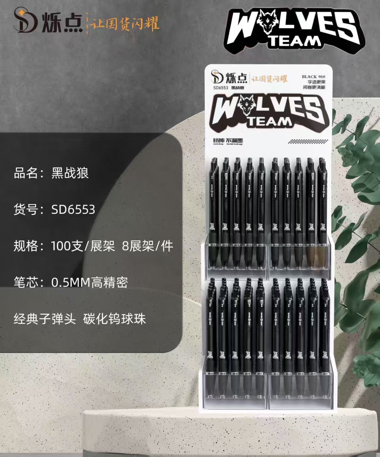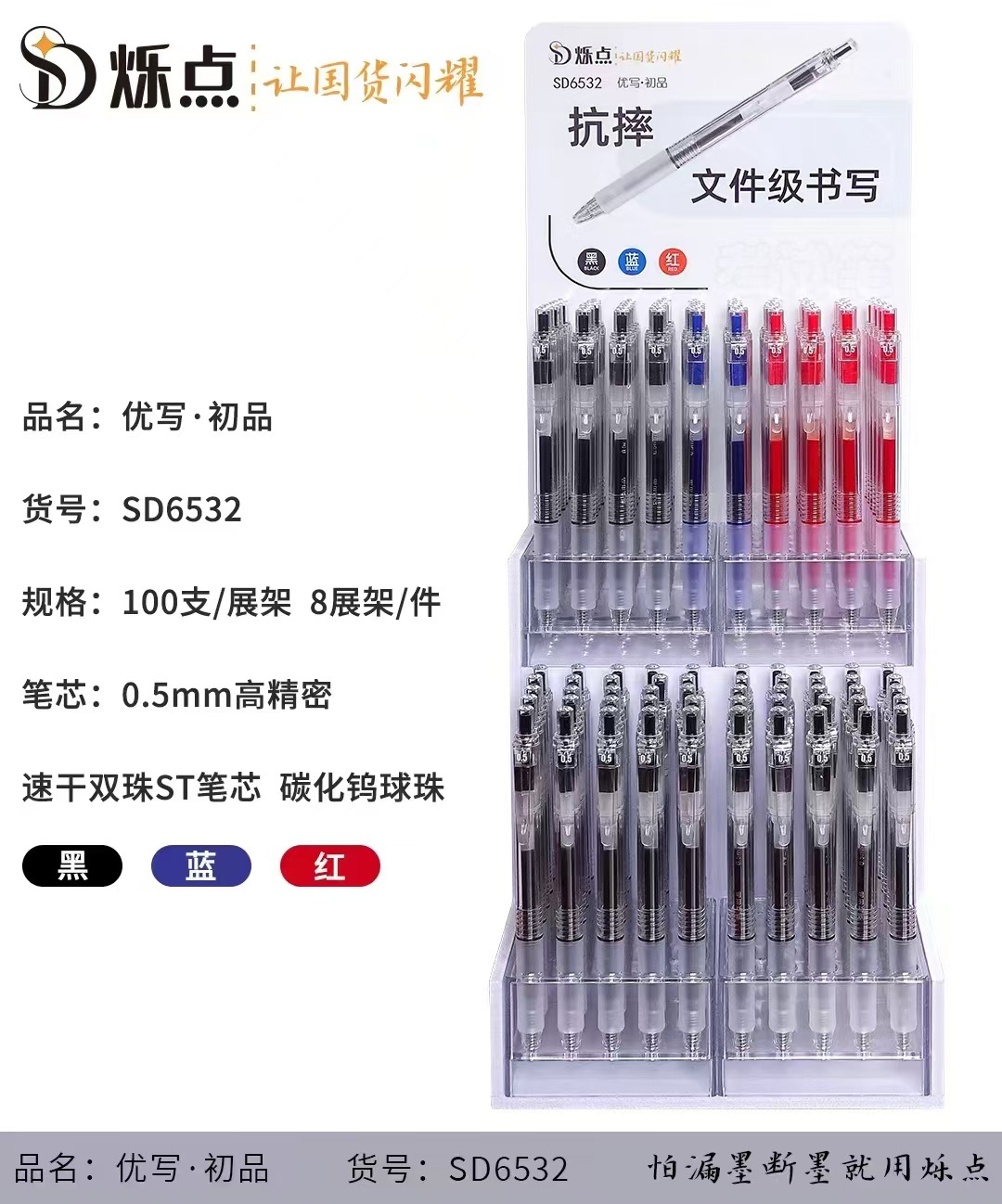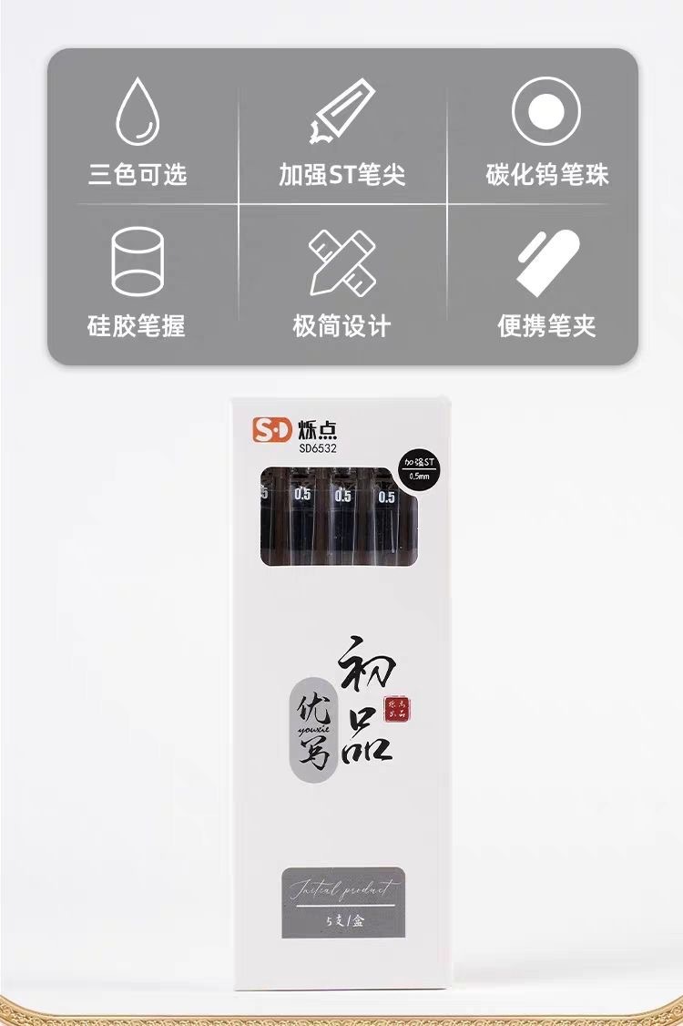 シンチレータ6532黒ペンstペン学生試験ペン水性ペン速乾双珠滑らかブラシ問題ペンシンチレータ中性ペン