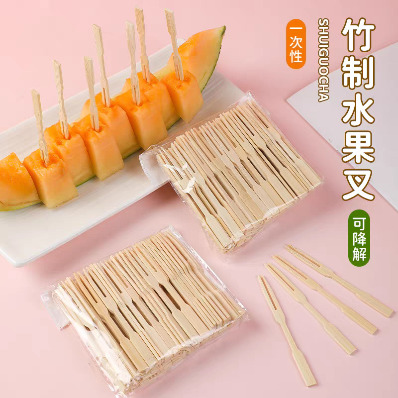 使い捨てフルーツフォーク竹製二歯フォークケーキお菓子デザート天然竹小さなフォーク家庭用食器卸売