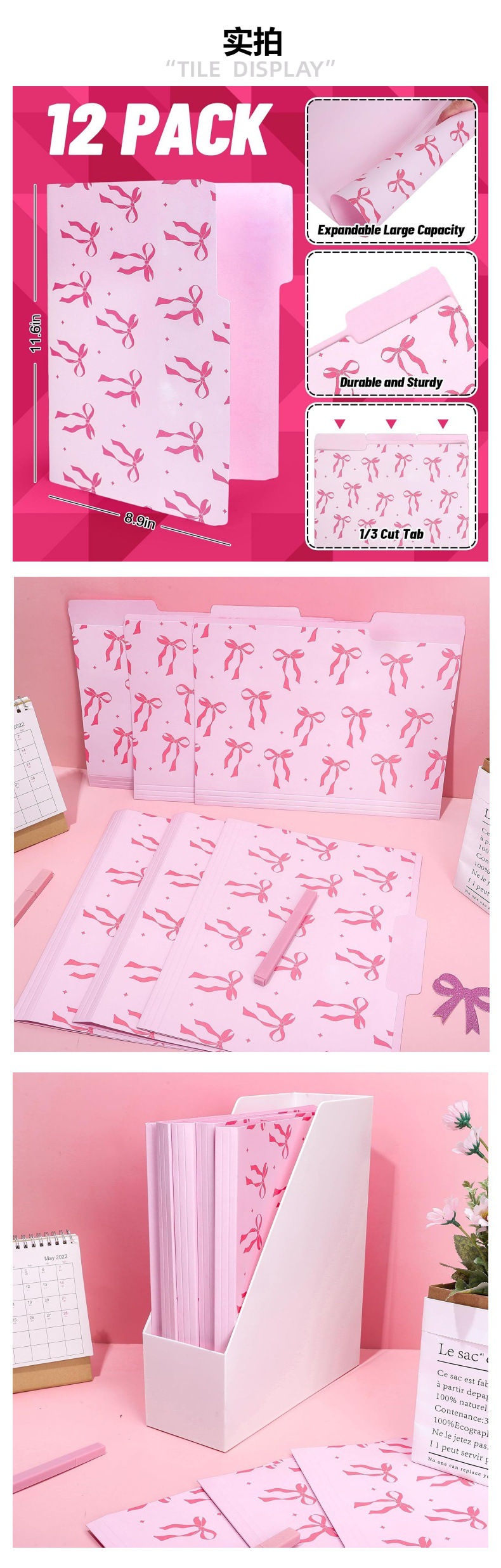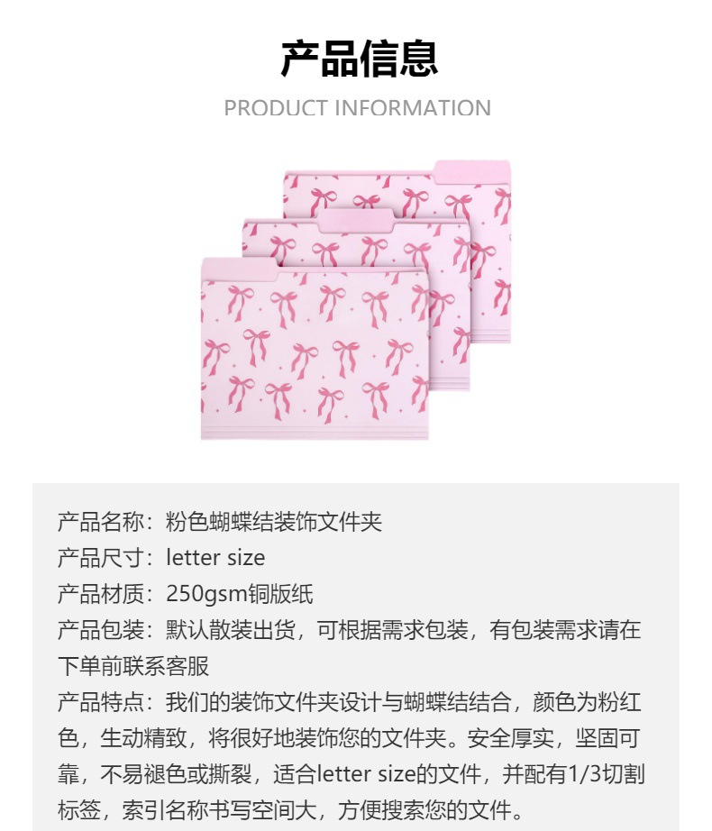国境を越えた紙のピンクの蝶ネクタイ1/3カットラベルフォルダDecorate folder装飾フォルダ
