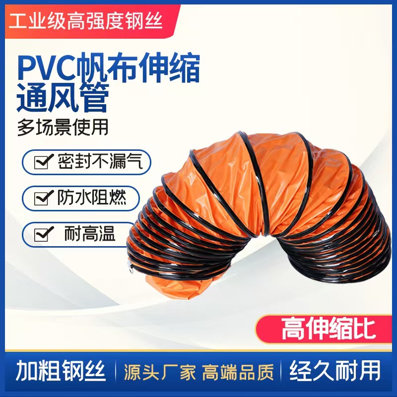 オレンジ色の風管養殖場豚舎風管空港船舶工場トンネル鉱用風管pvc伸縮通風管