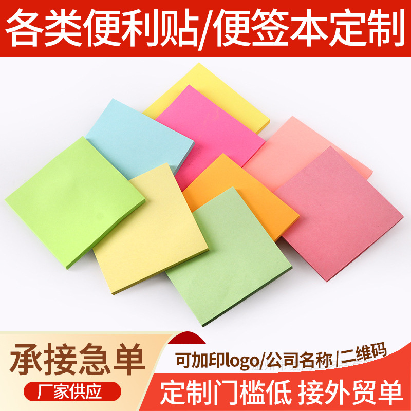 荧光彩色3*3英寸便利贴可撕学生用备忘便条纸n次贴便签本可定制