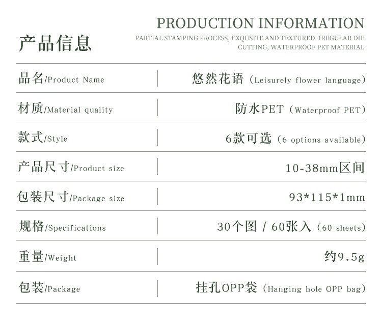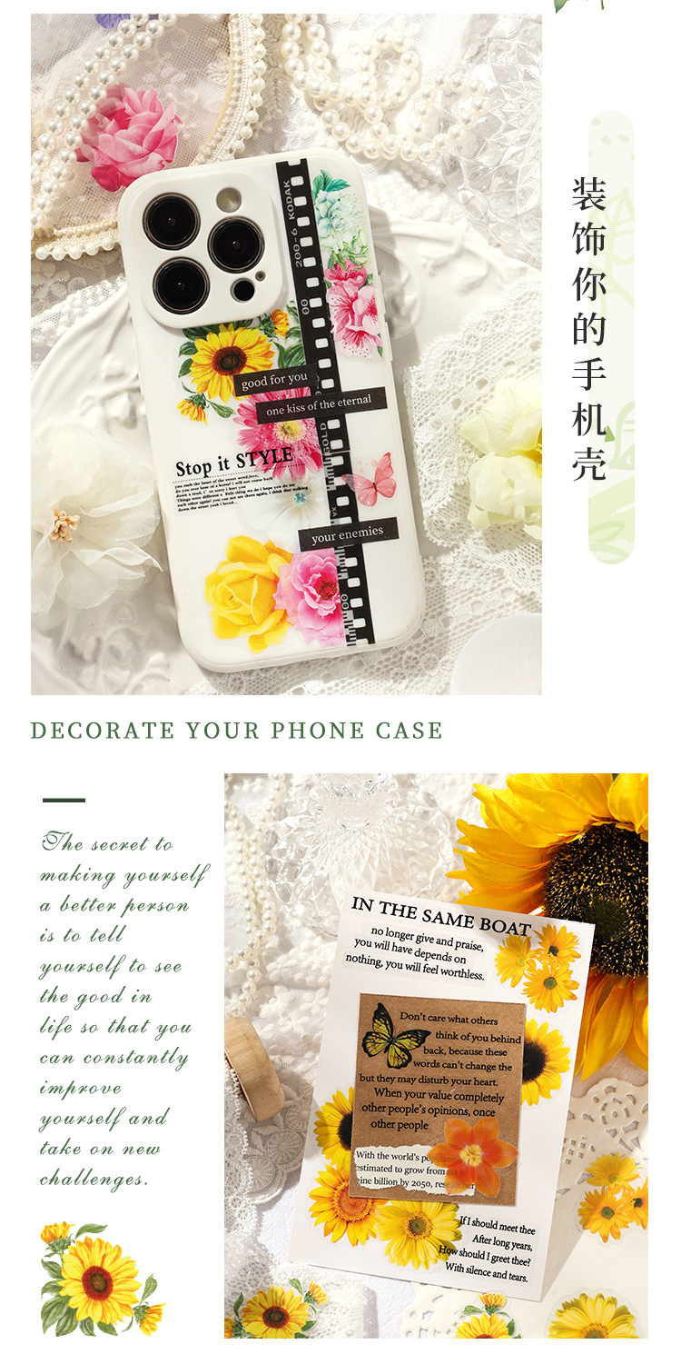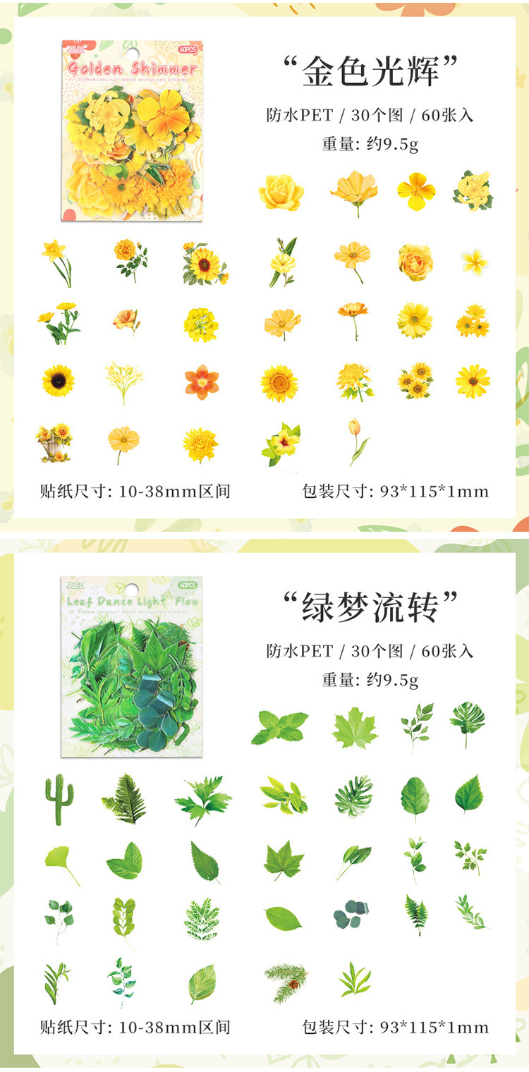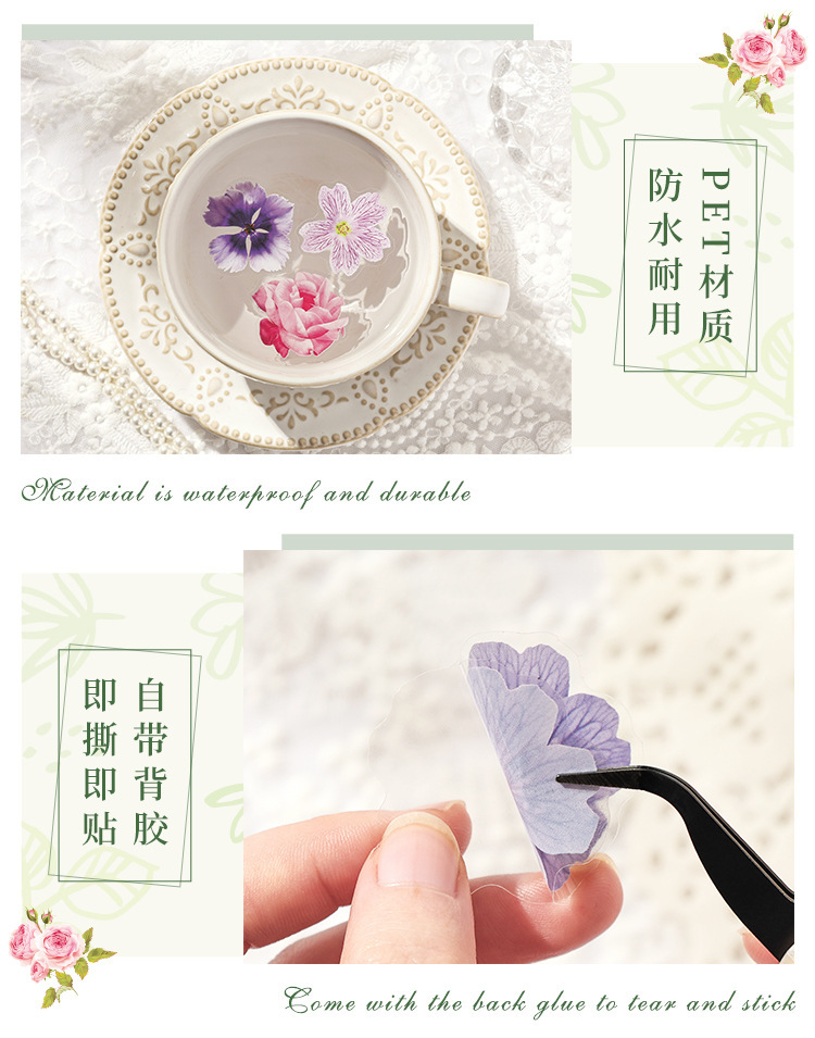 PET防水手帳シールケース小清新植物花卉塩系流麻手帳タイル装飾DIYステッカー
