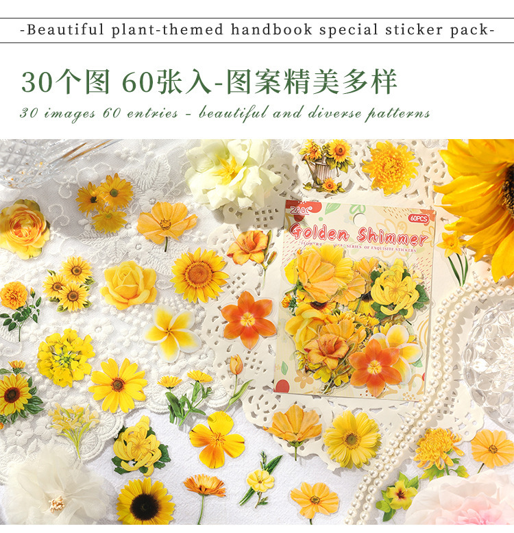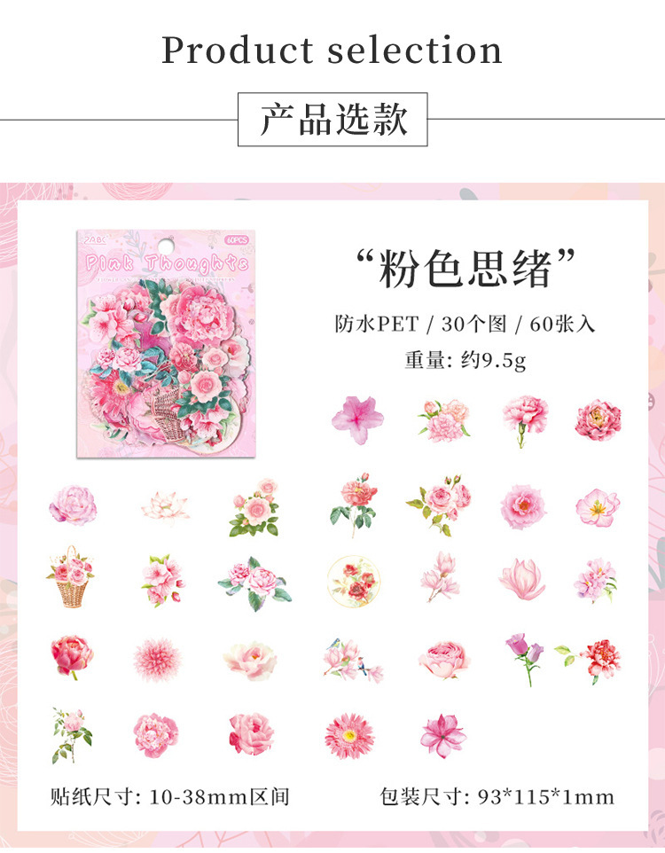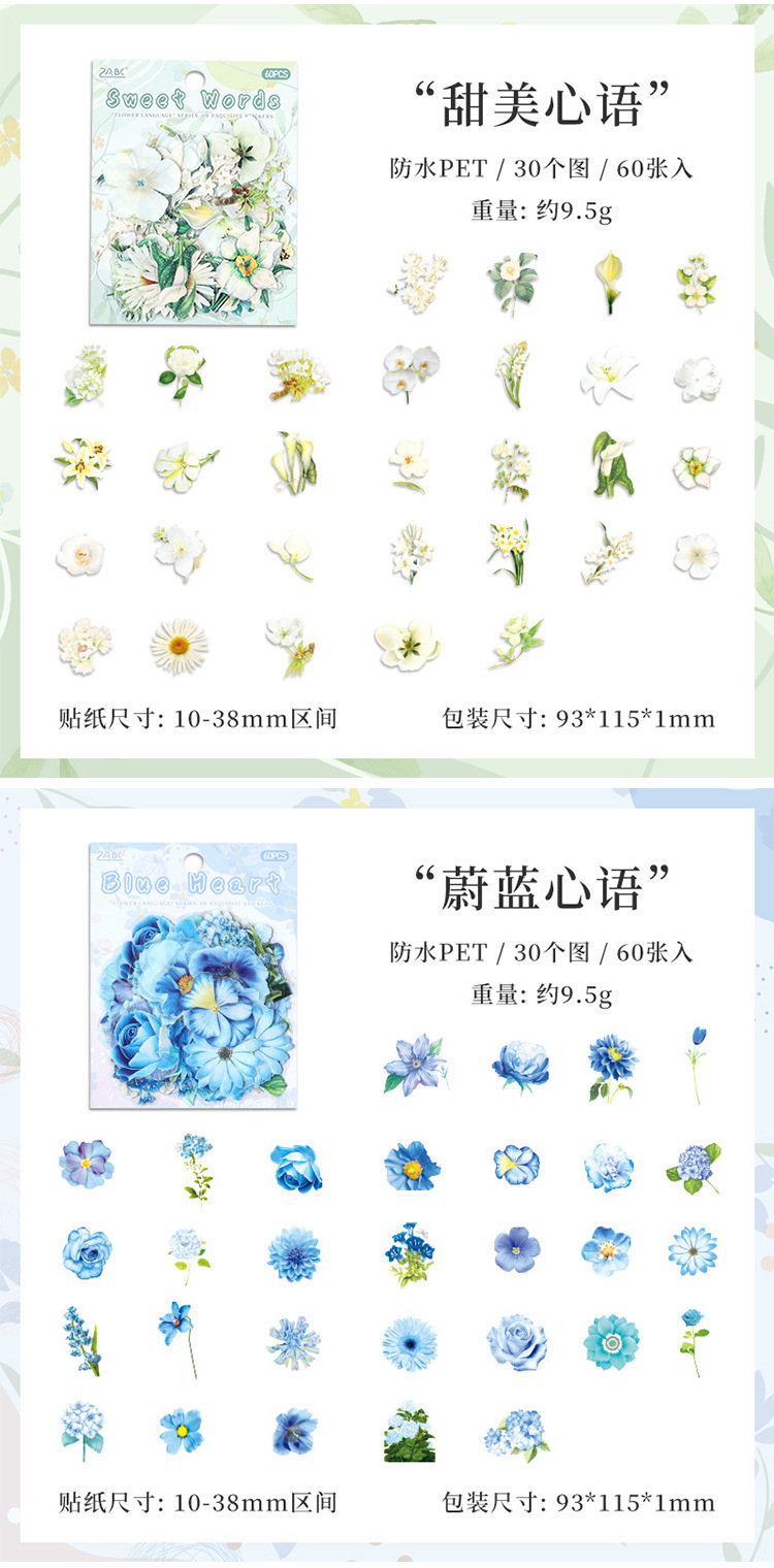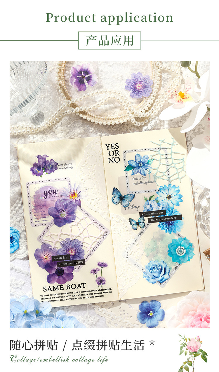 PET防水手帳シールケース小清新植物花卉塩系流麻手帳タイル装飾DIYステッカー