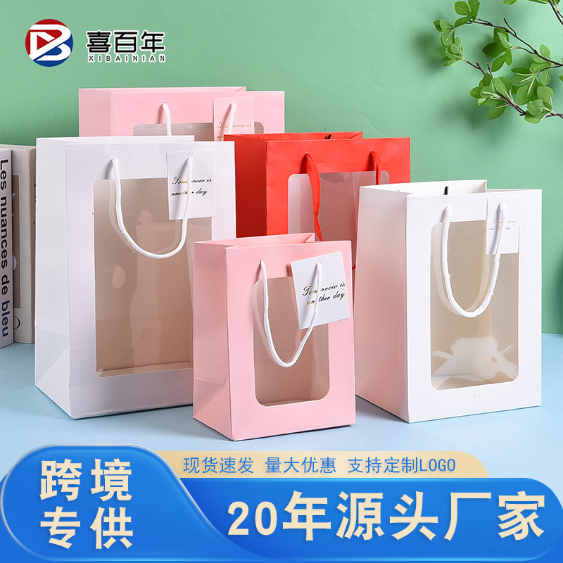 越境販売用ウィンドウバッグ、バレンタインデーギフトバッグ、花束包装バッグ、手提げウィンドウバッグ、厚手のお土産バッグ