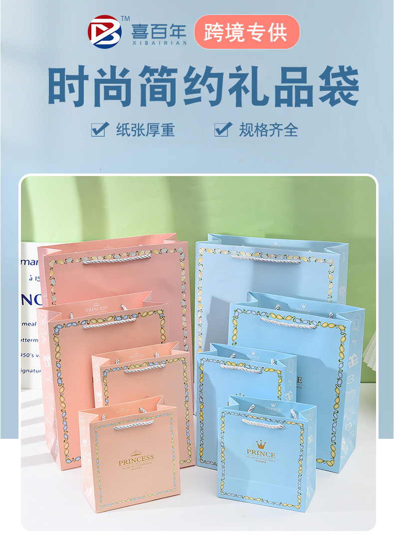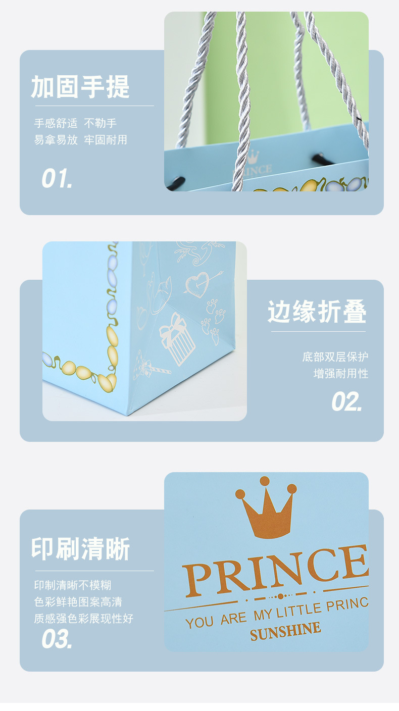 新しいギフトバッグの紙袋卸売り王子とお姫様のギフトバッグ赤ちゃんのお祝いのお返し紙袋メーカー直販