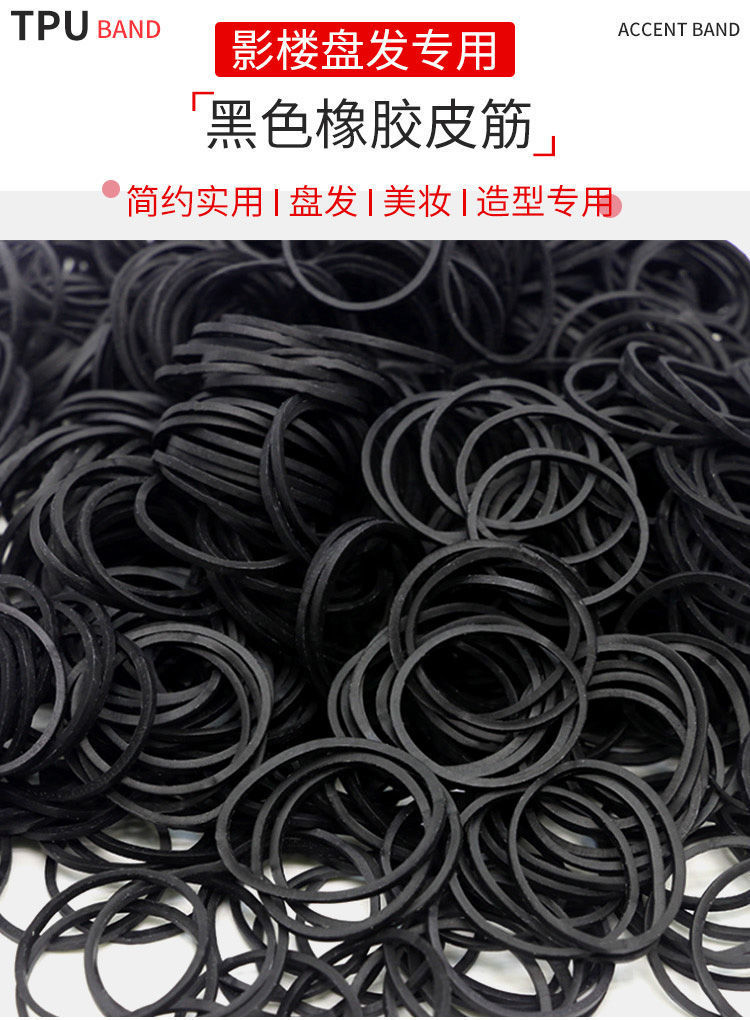 黑色高弹力耐用橡皮筋一次性化妆师影楼专用盘发牛皮筋商用发圈
