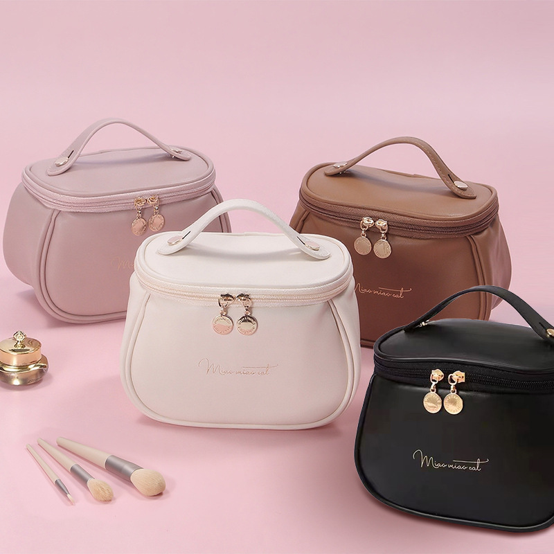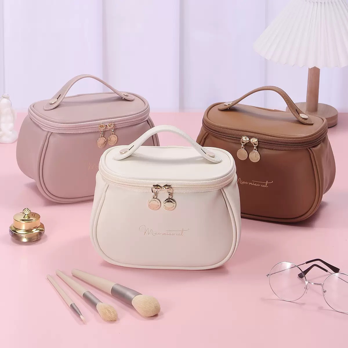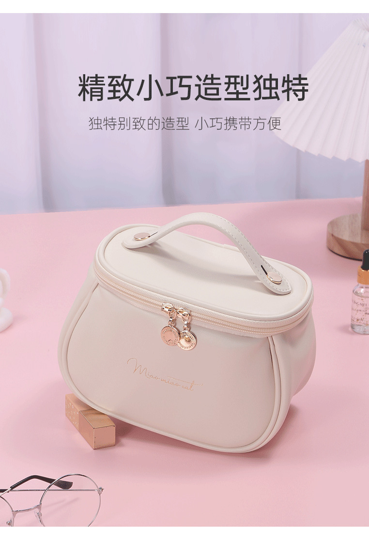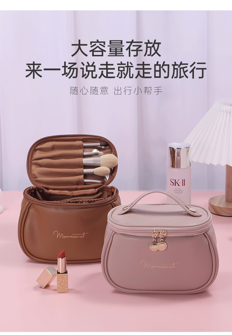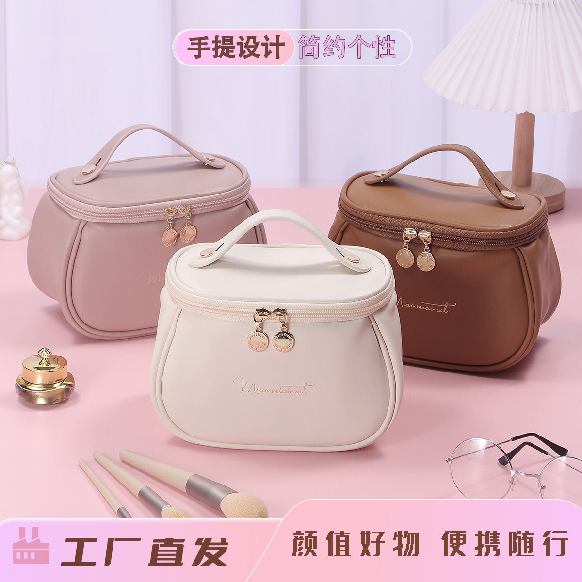ins高颜值手提化妆包大容量高级感分区收纳包防水pu便携式洗漱包