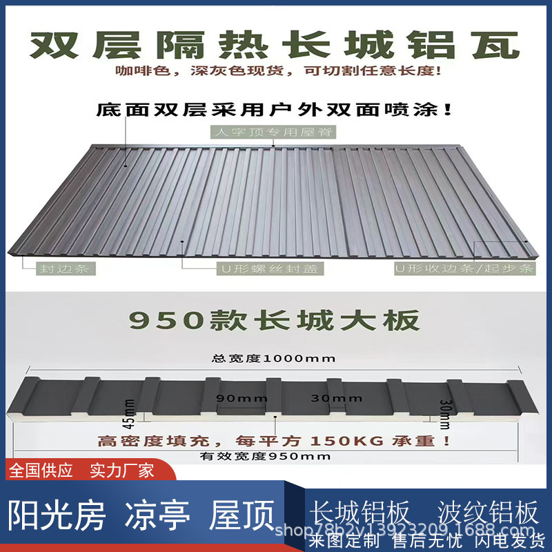 950万里の長城断熱大型ボード二層厚い屋根アルミ瓦パビリオン日焼け止め凹凸アルミニウム合金板メーカー直販