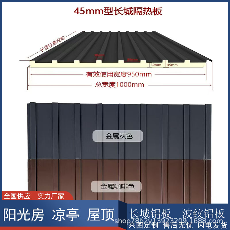 アルミ合金万里の長城断熱大型プレートサンルーム涼亭アルミ板屋根二重凹凸防音カラー鋼雨よけアルミ瓦