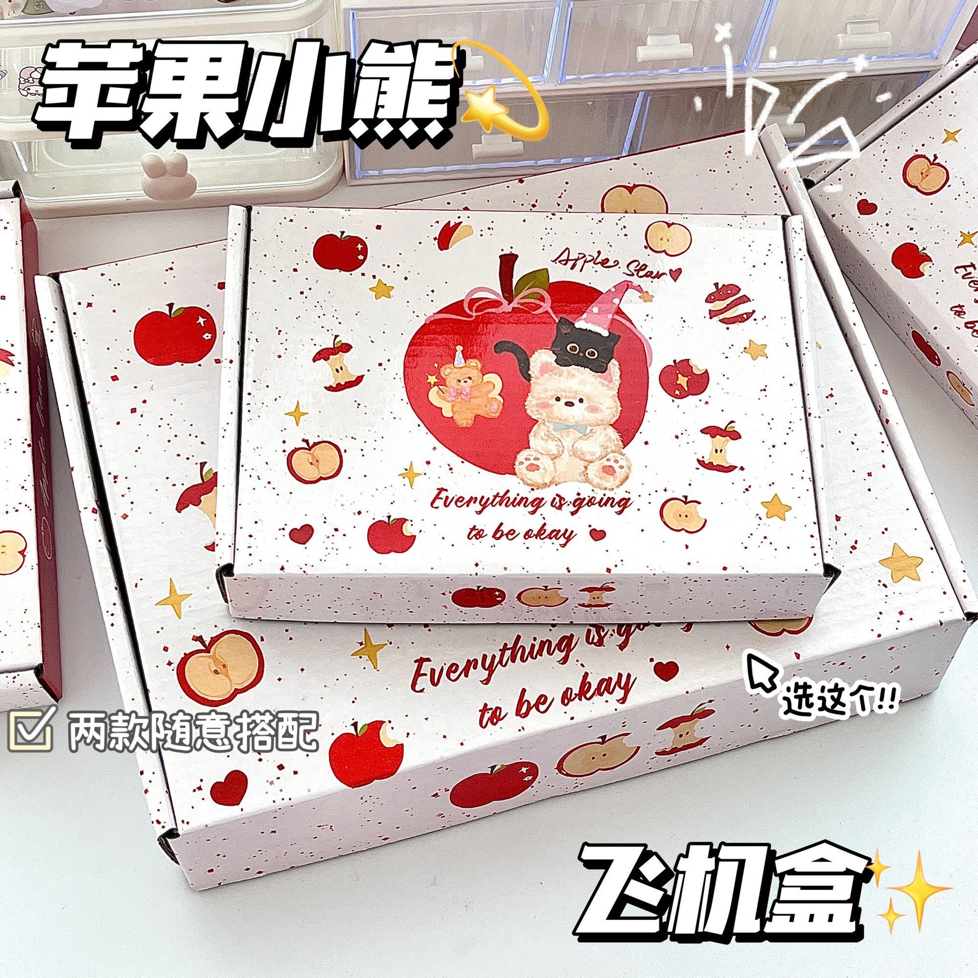 新款苹果小熊飞机盒ins高颜值加厚特硬折叠纸箱手工打包礼品纸盒