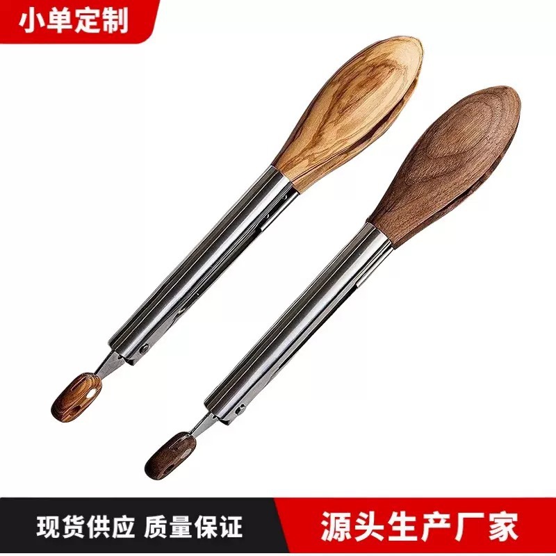 厂家批发胡桃木食物夹不锈钢食品夹9寸12寸BBQ烧烤夹烤肉夹梅花头