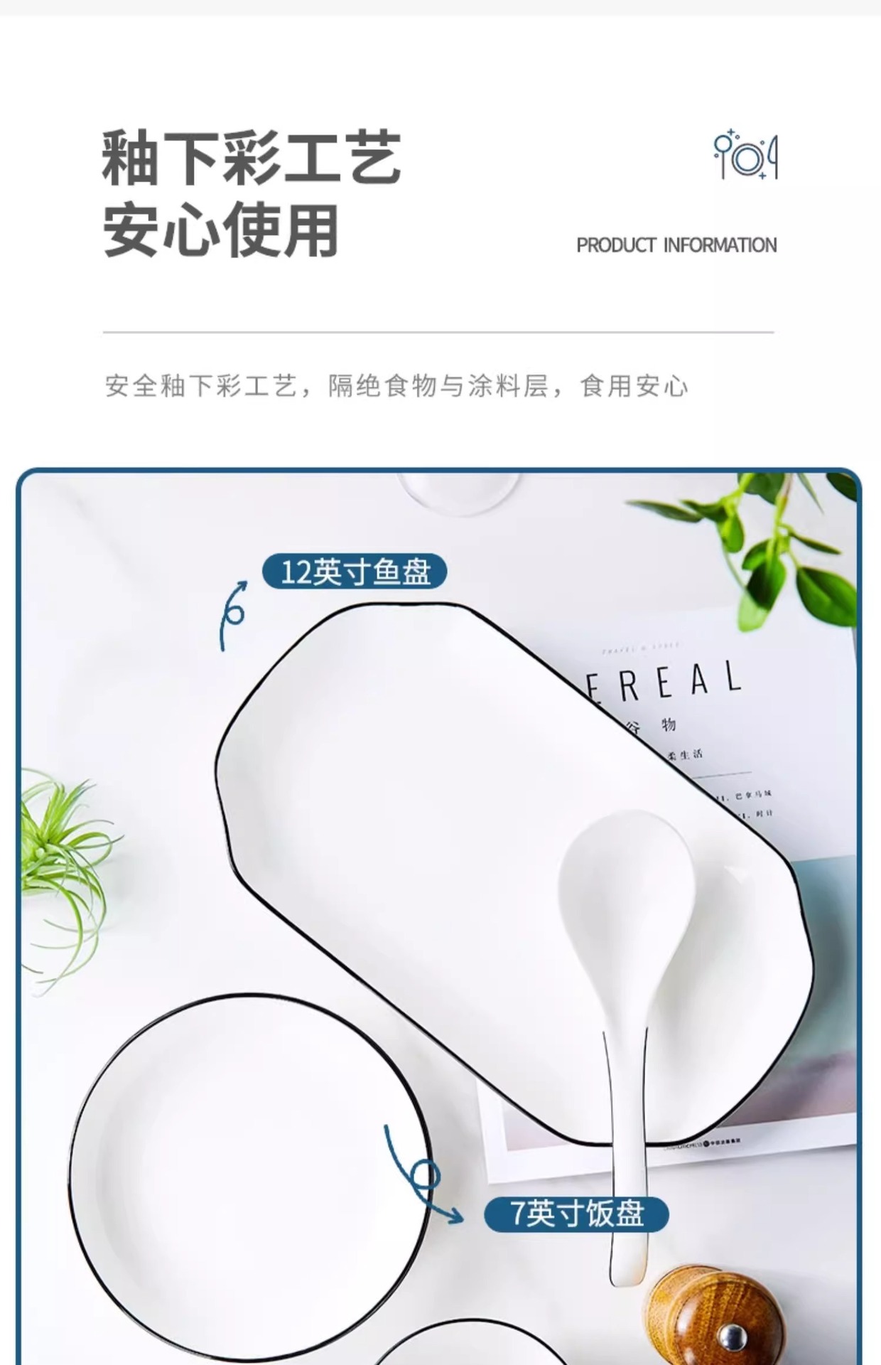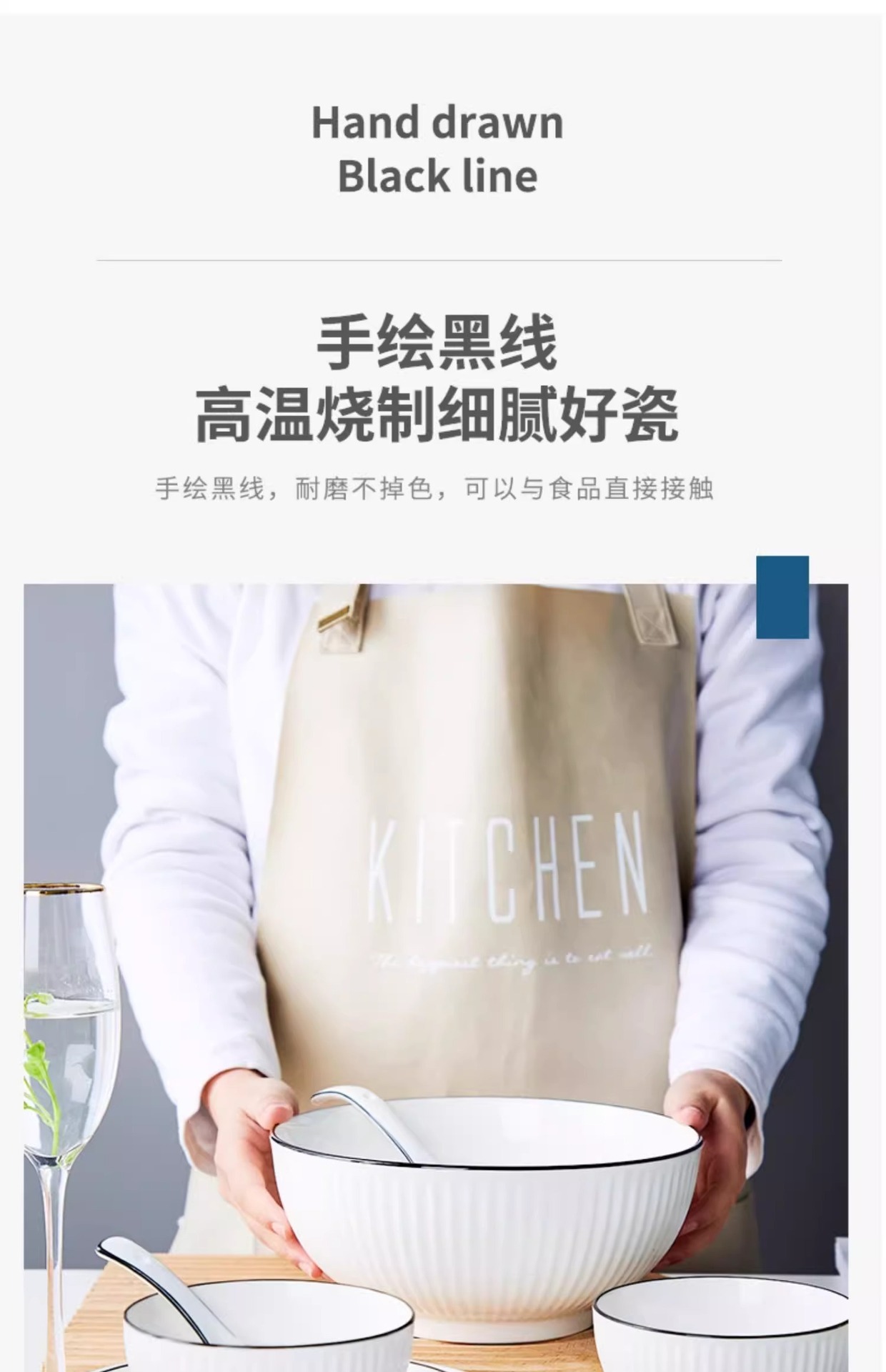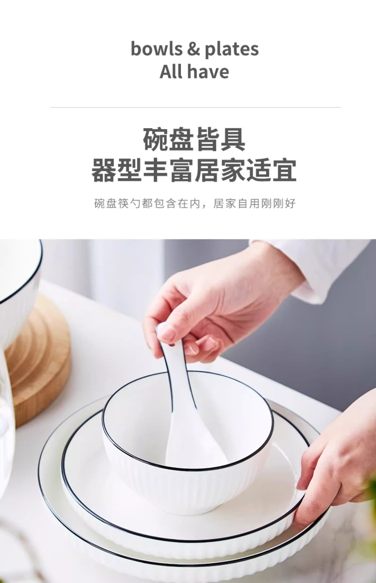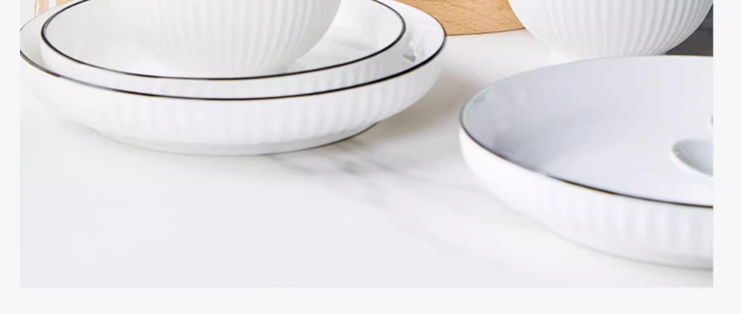 家庭用食器黒ライン釉下色セラミックギフトボウルプレートスプーンセラミック食器セット景徳鎮セラミック