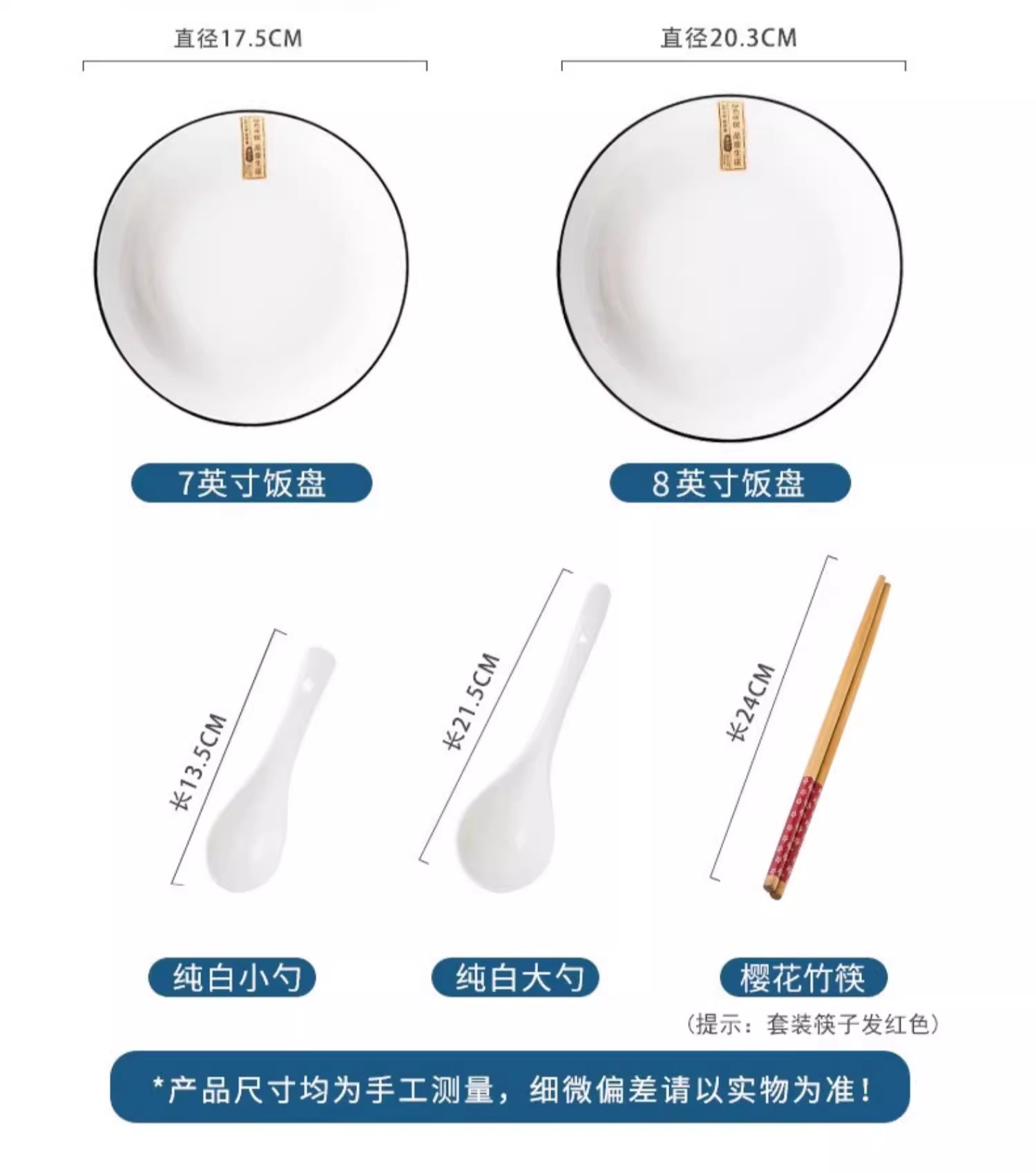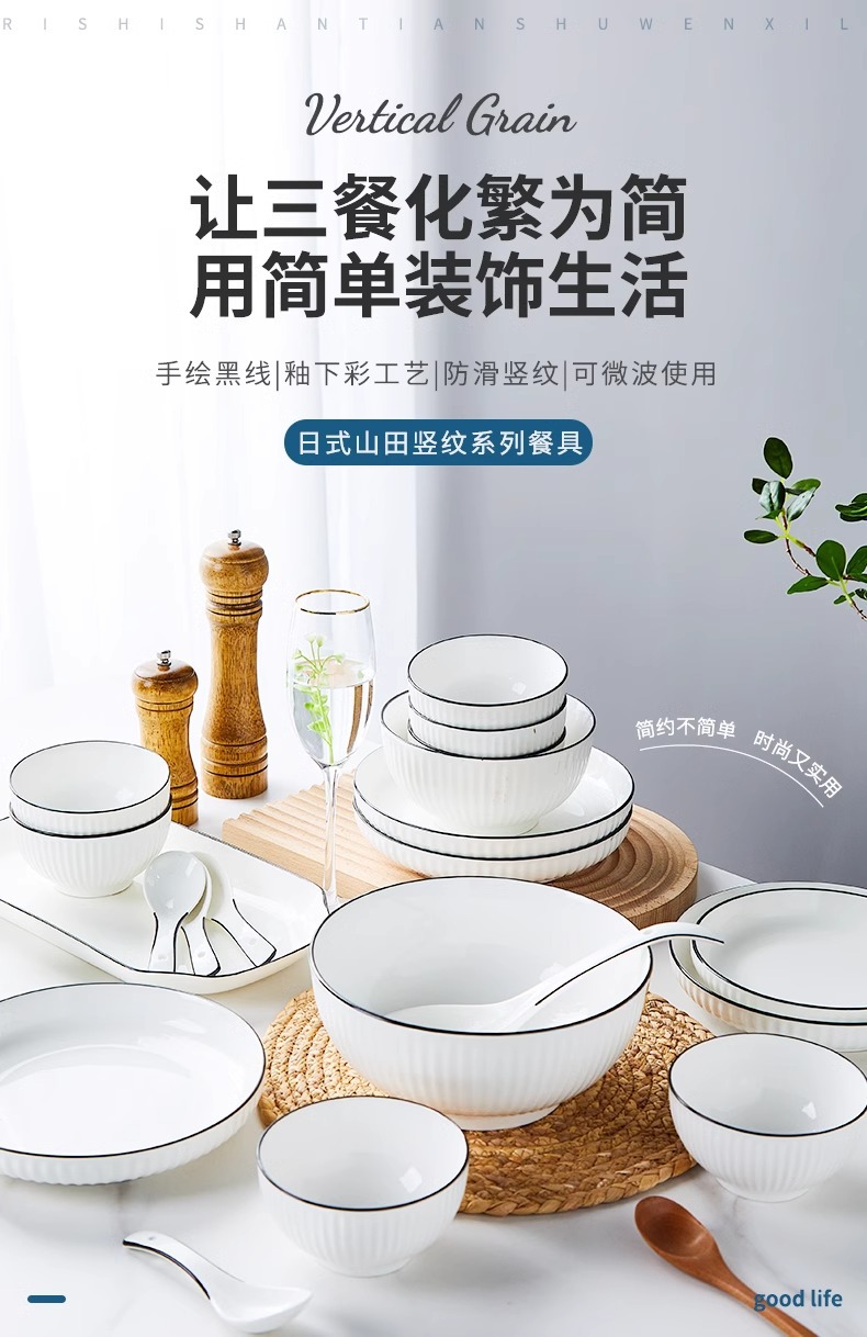 家用碗碟黑线釉下彩陶瓷礼品碗盘勺陶瓷餐具套装景德镇陶瓷