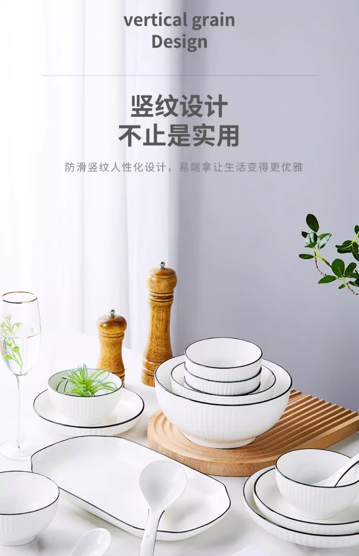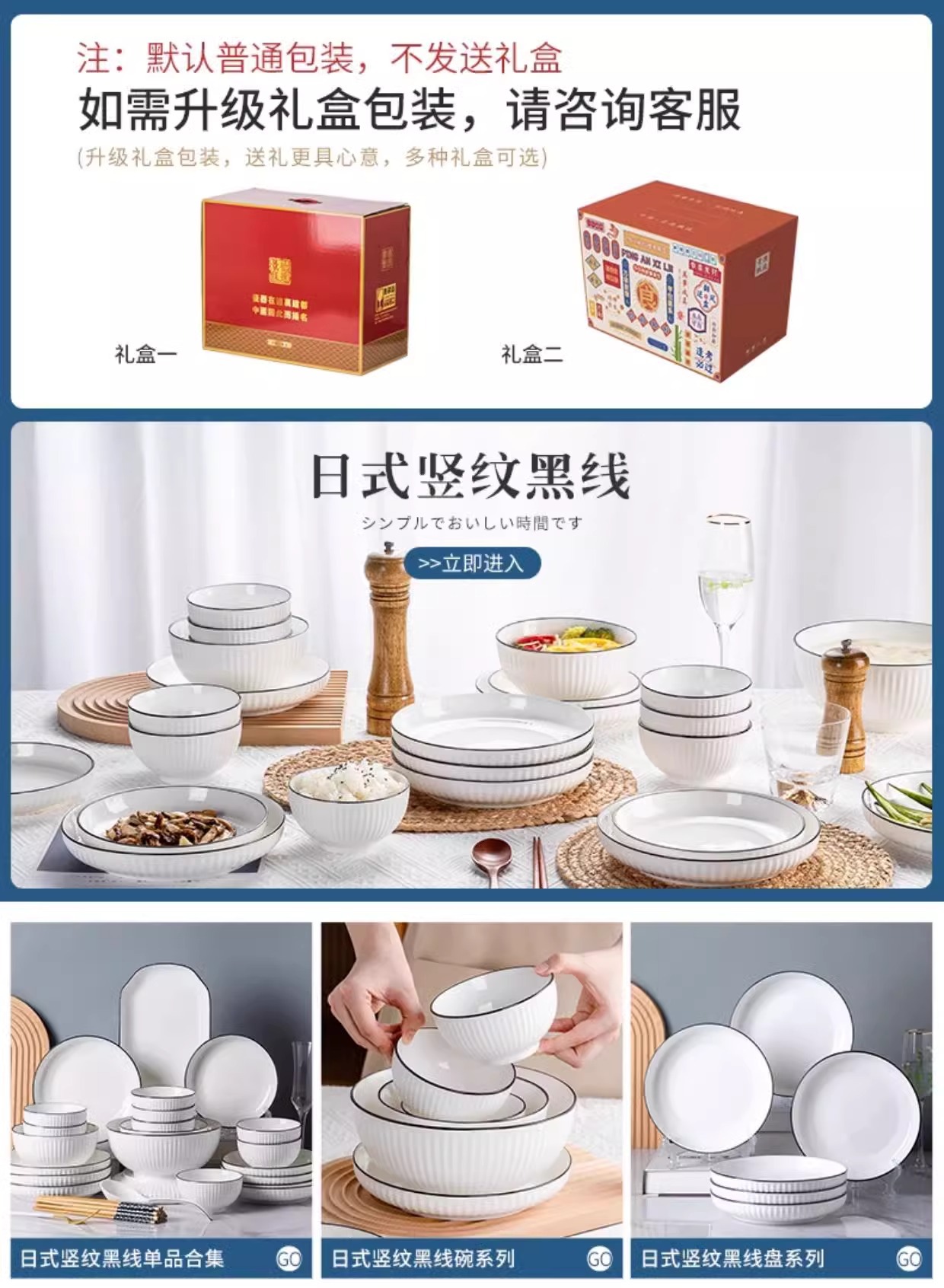 純白のストライプのボウルと皿の食器セット、高級魚皿と皿、陶器の食器ギフトボックス、日本のギフトイベントギフト