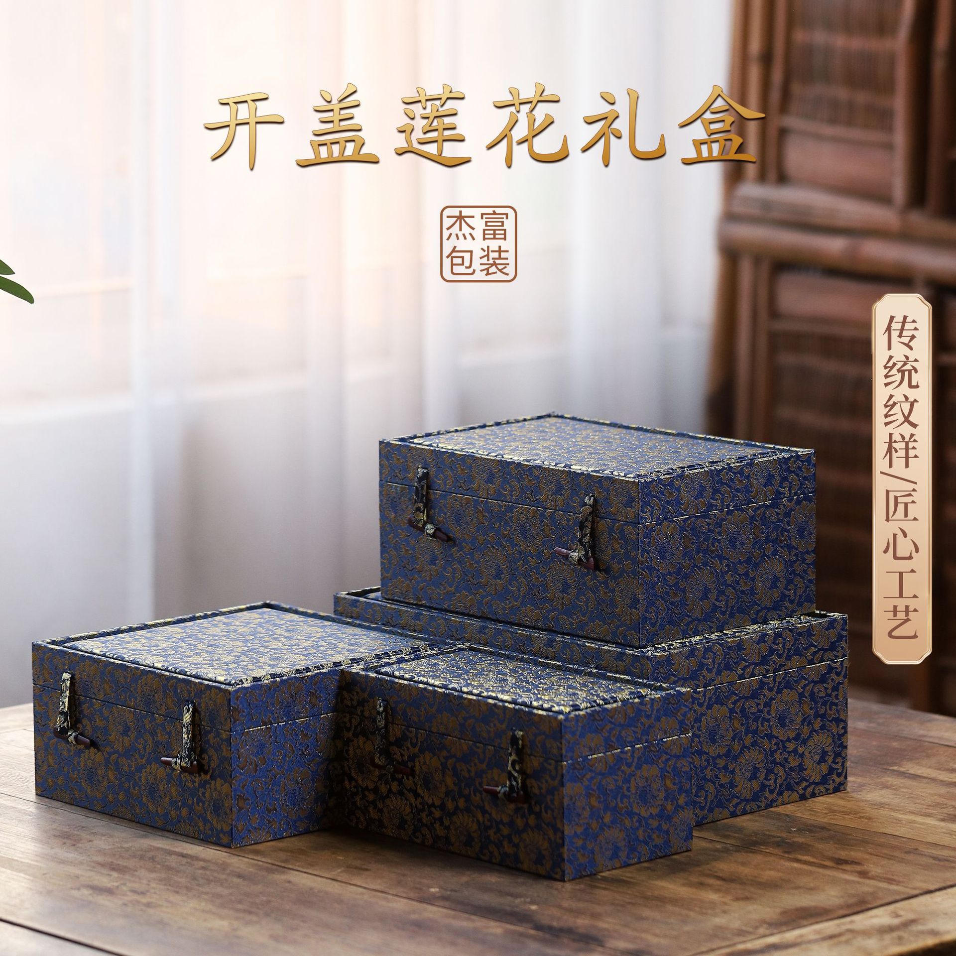 复古开盖莲花套盒 一壶四杯一壶两杯多规格茶具专用收纳锦盒