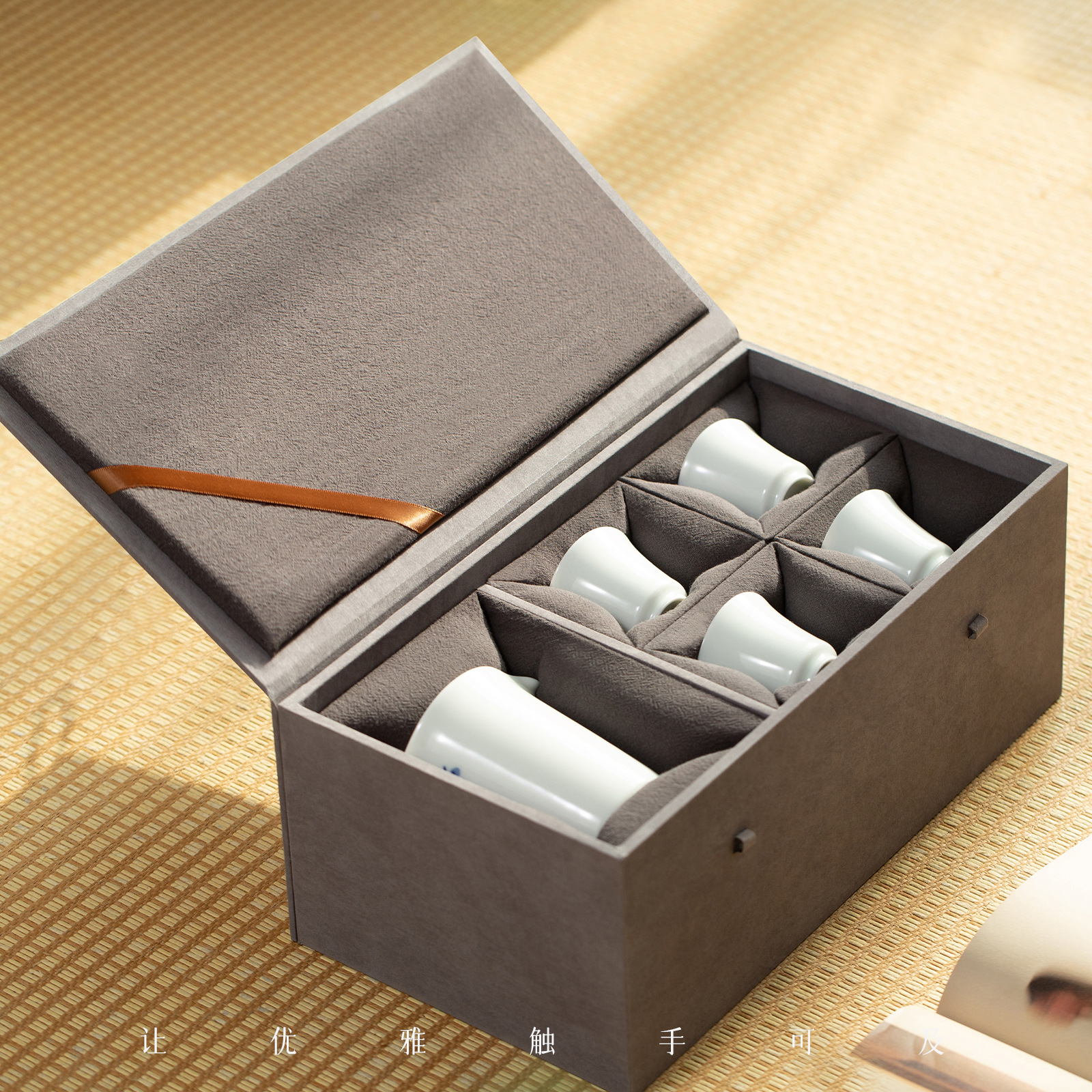 灰色のベルベット布製茶器ギフトボックス、建盞(建茶器)蓋碗、紫砂壺包装箱セット、茶器収納ボックス、茶碗ギフトボックス
