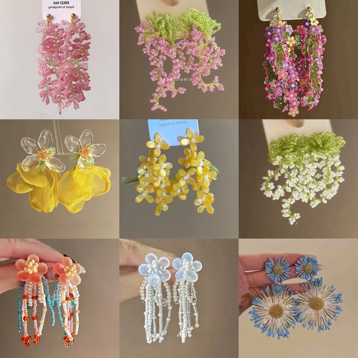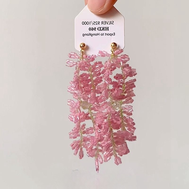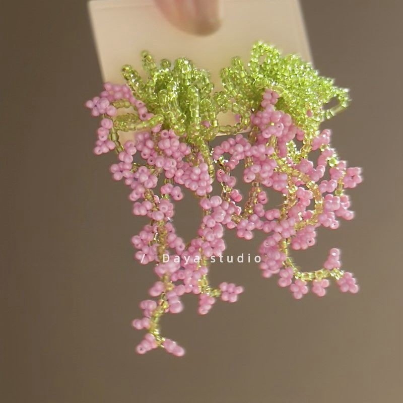 夏の色合い! 小さな花のフリンジのビーズのピアスの女性の仙気の海辺の休暇の森系のイヤリングの周囲の顔の耳飾り
