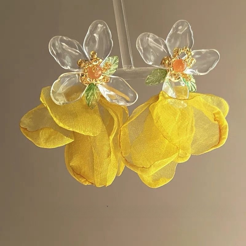 明媚岛屿~度假风黄色花瓣流苏耳环女显脸小海边耳饰夸张2025新款