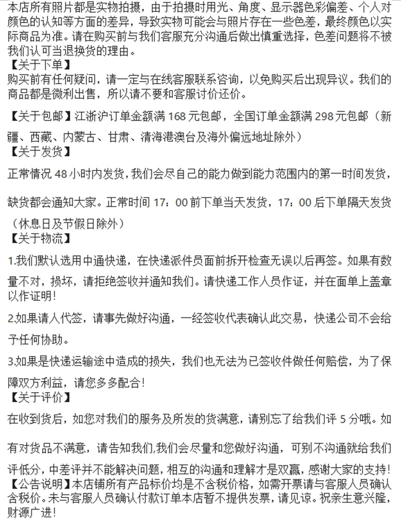 定制产品,非质量问题,不支持退换货!