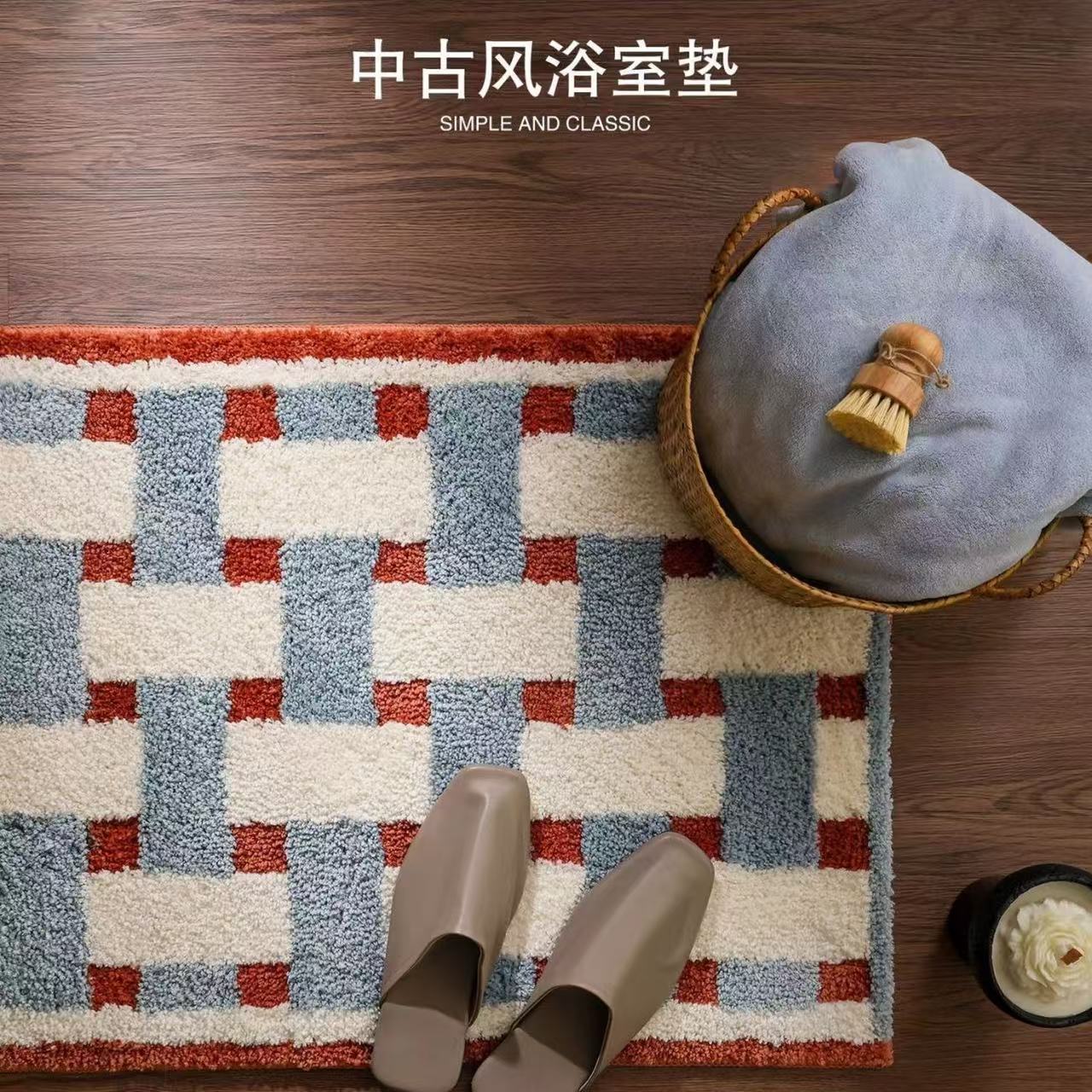 植绒地垫复古风浴室地垫加厚簇绒脚垫卫生间防滑垫玄关入户门脚垫