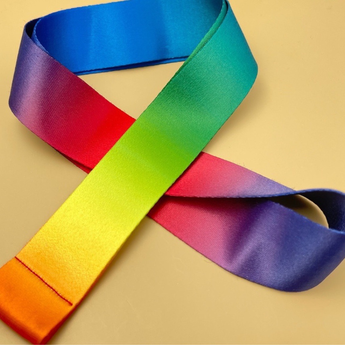 卸売りカスタム熱転写プリントリボンポリエステルカスタムストラップ虹グラデーションリボン学生胸札ストラップ
