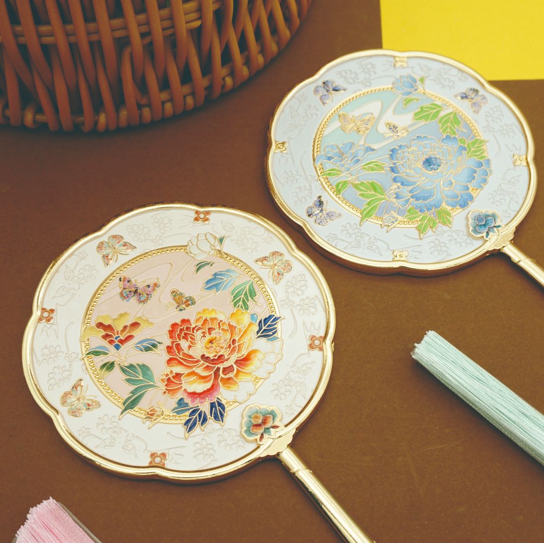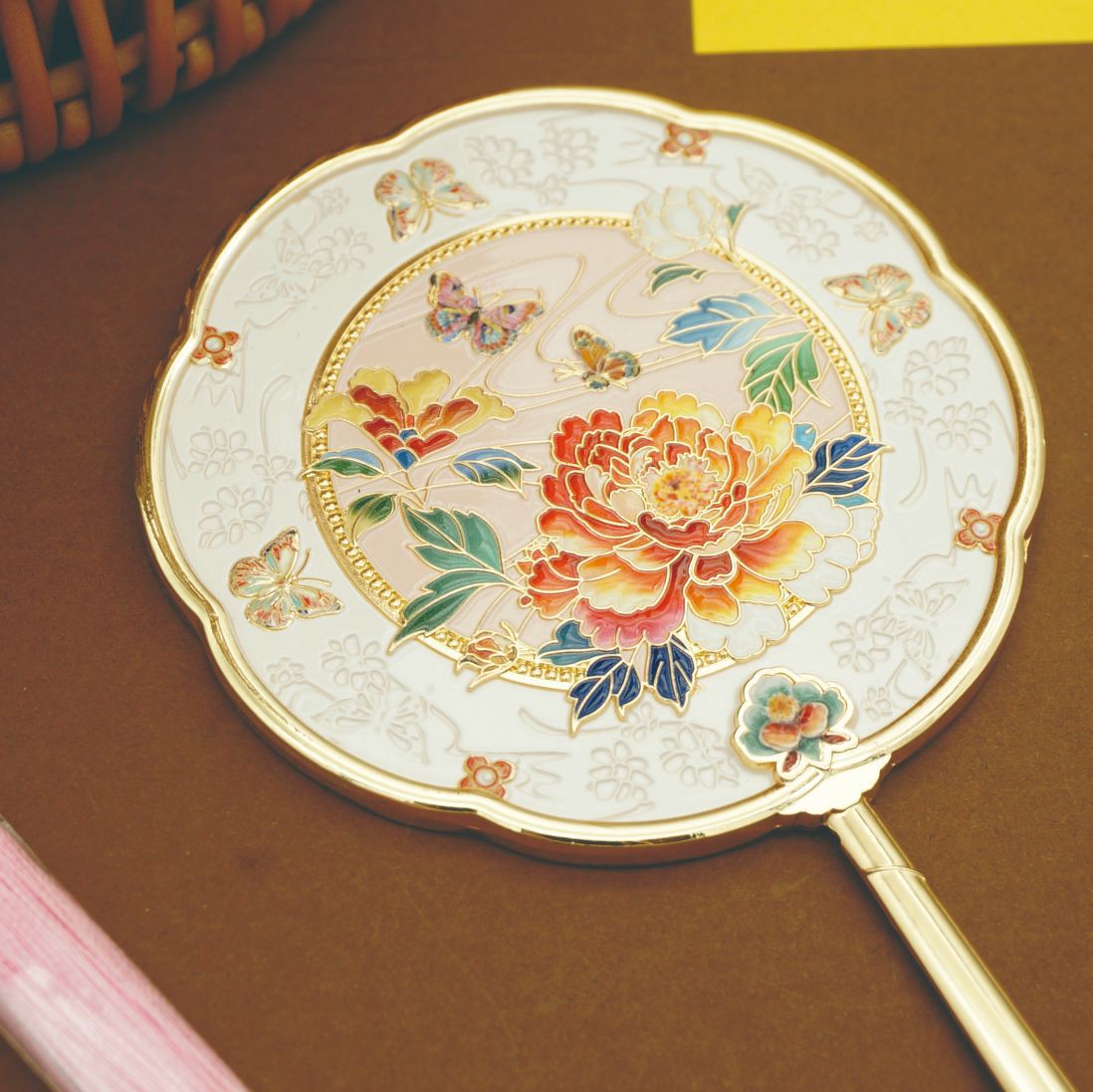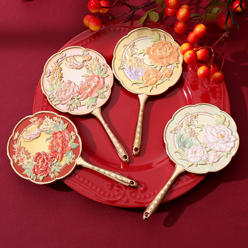 文化的で創造的な中国風の手持ちミラー、古典的なパターンの電気メッキ旅行のお土産、金メッキのポータブル折りたたみ小型ミラー卸売