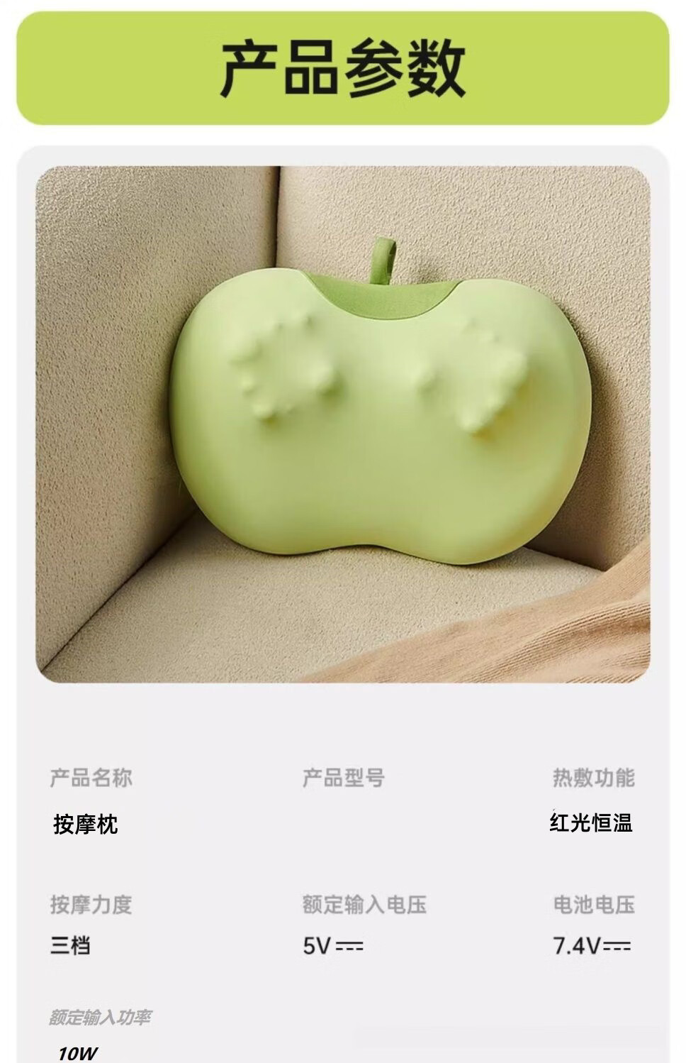 颈椎按摩器苹果按摩枕腰部按摩仪按摩枕头颈部肩颈背多功能礼品