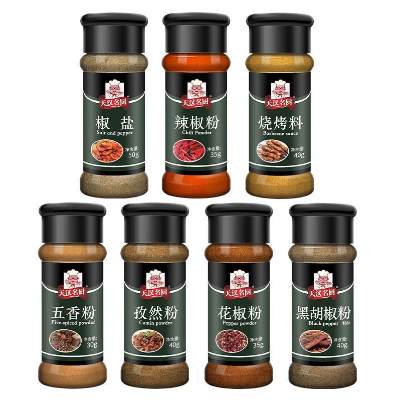バーベキュー調味料セット 家庭用クミン、塩、コショウ、パプリカ、調味料、ディップの組み合わせの7本フルセット