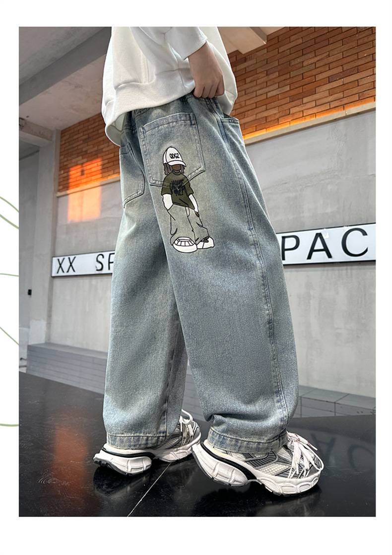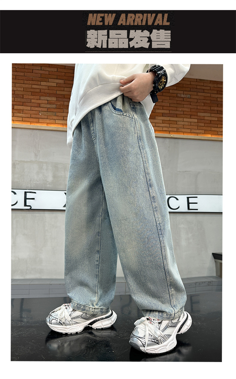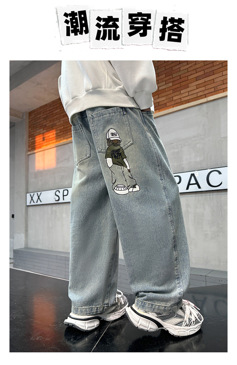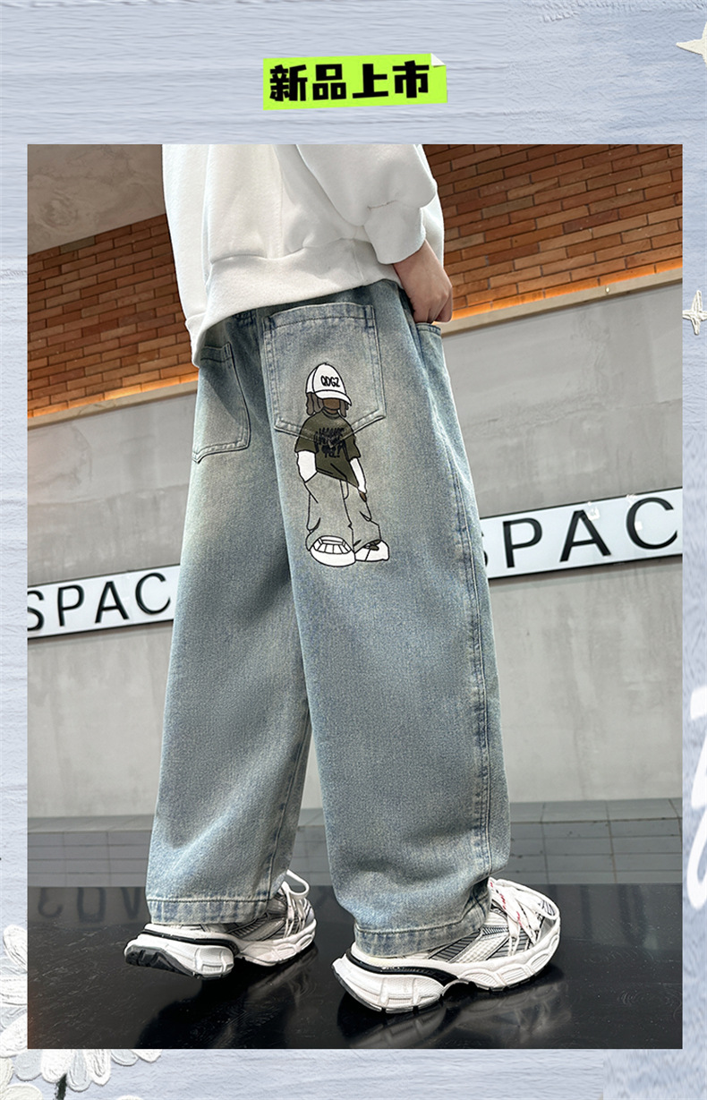 春秋新款男童牛仔裤中大童宽松长裤儿童牛仔长裤百搭潮流潮牌跨境