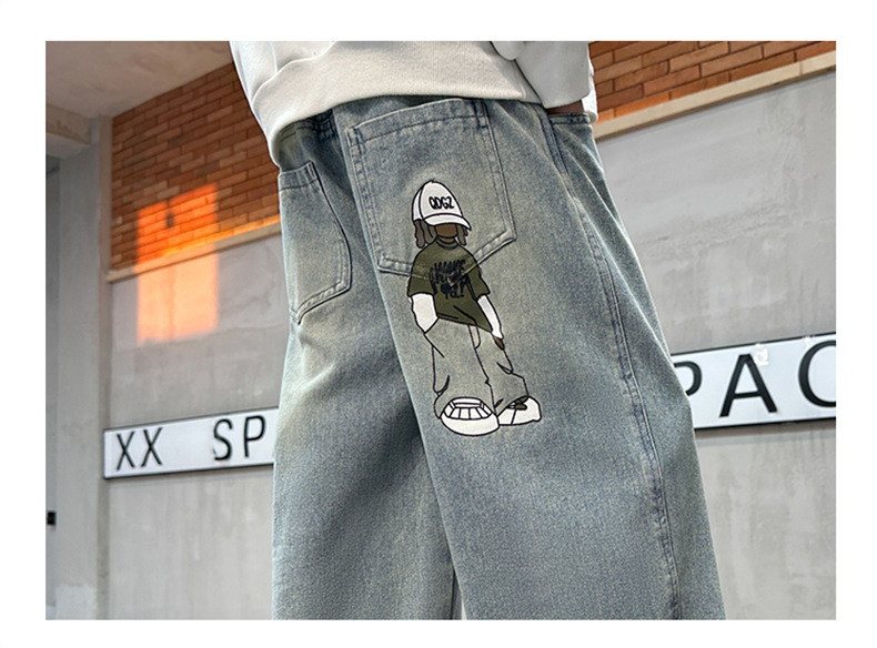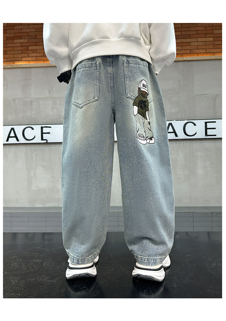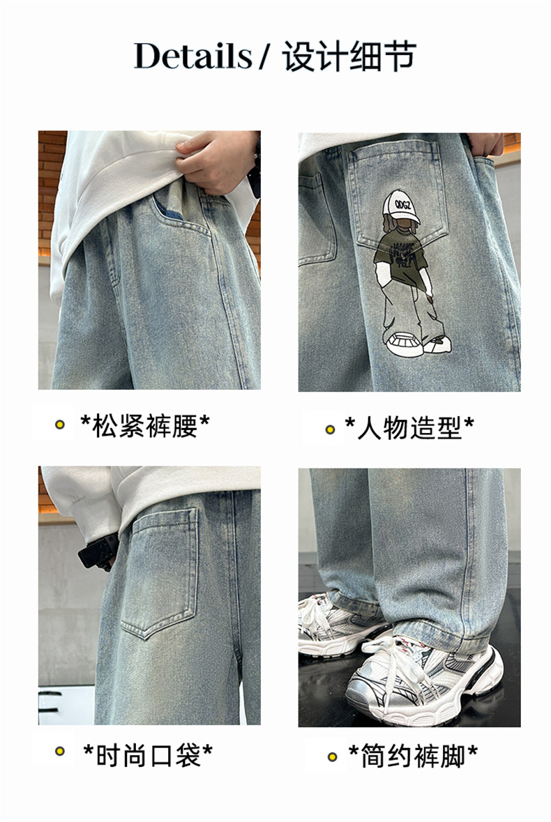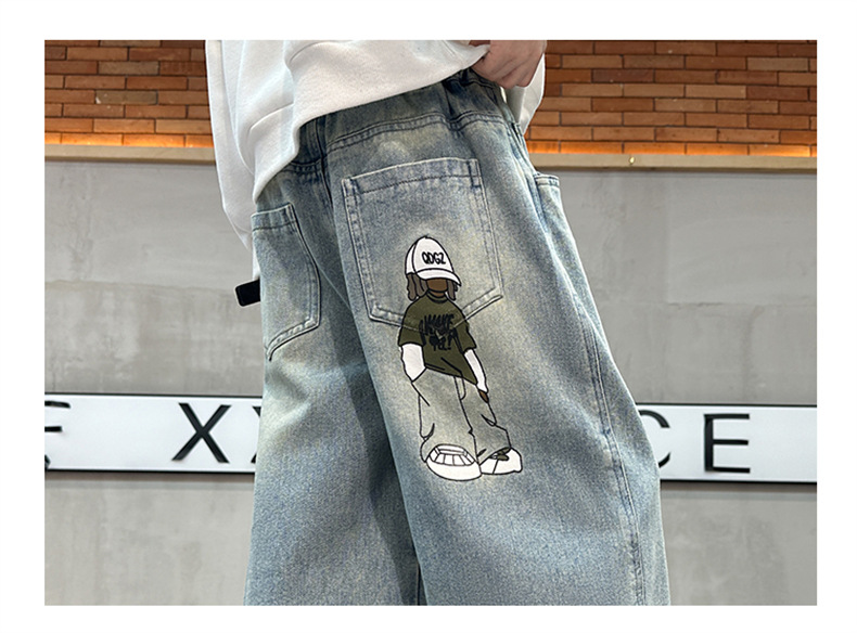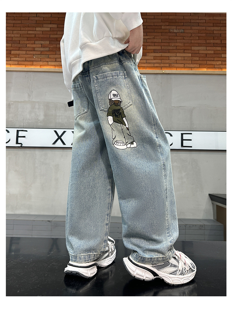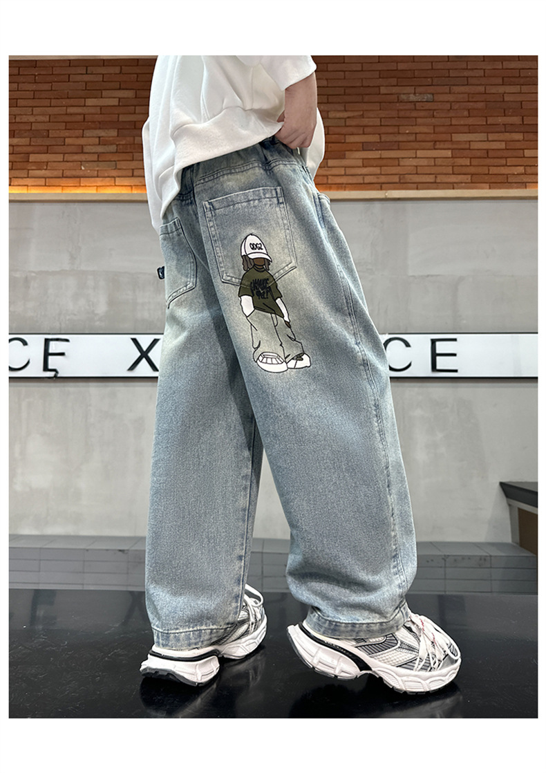 春秋新款男童牛仔裤中大童宽松长裤儿童牛仔长裤百搭潮流潮牌跨境