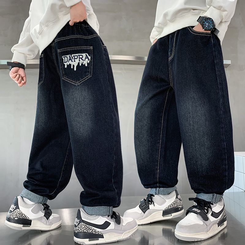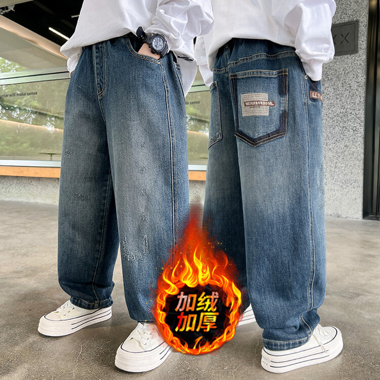 秋冬新款加绒加厚男童牛仔裤中大童长裤宽松老爹裤洋气休闲儿童裤