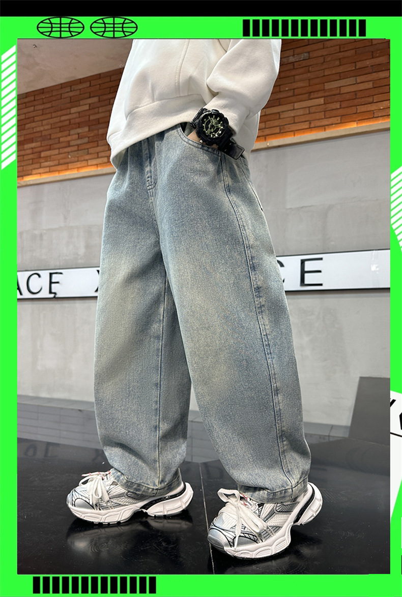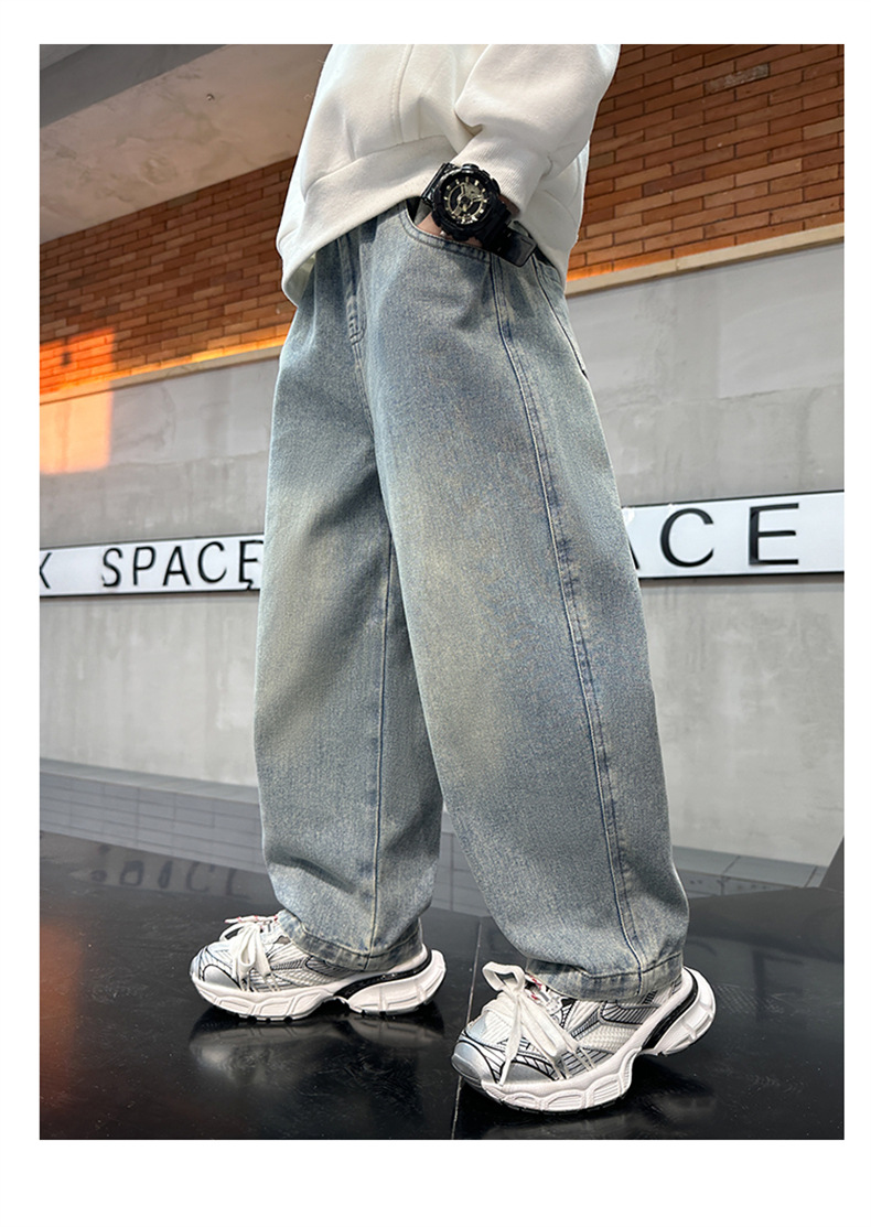 男童牛仔裤春秋款直筒裤儿童裤子中大童宽松阔腿裤秋冬加绒老爹裤