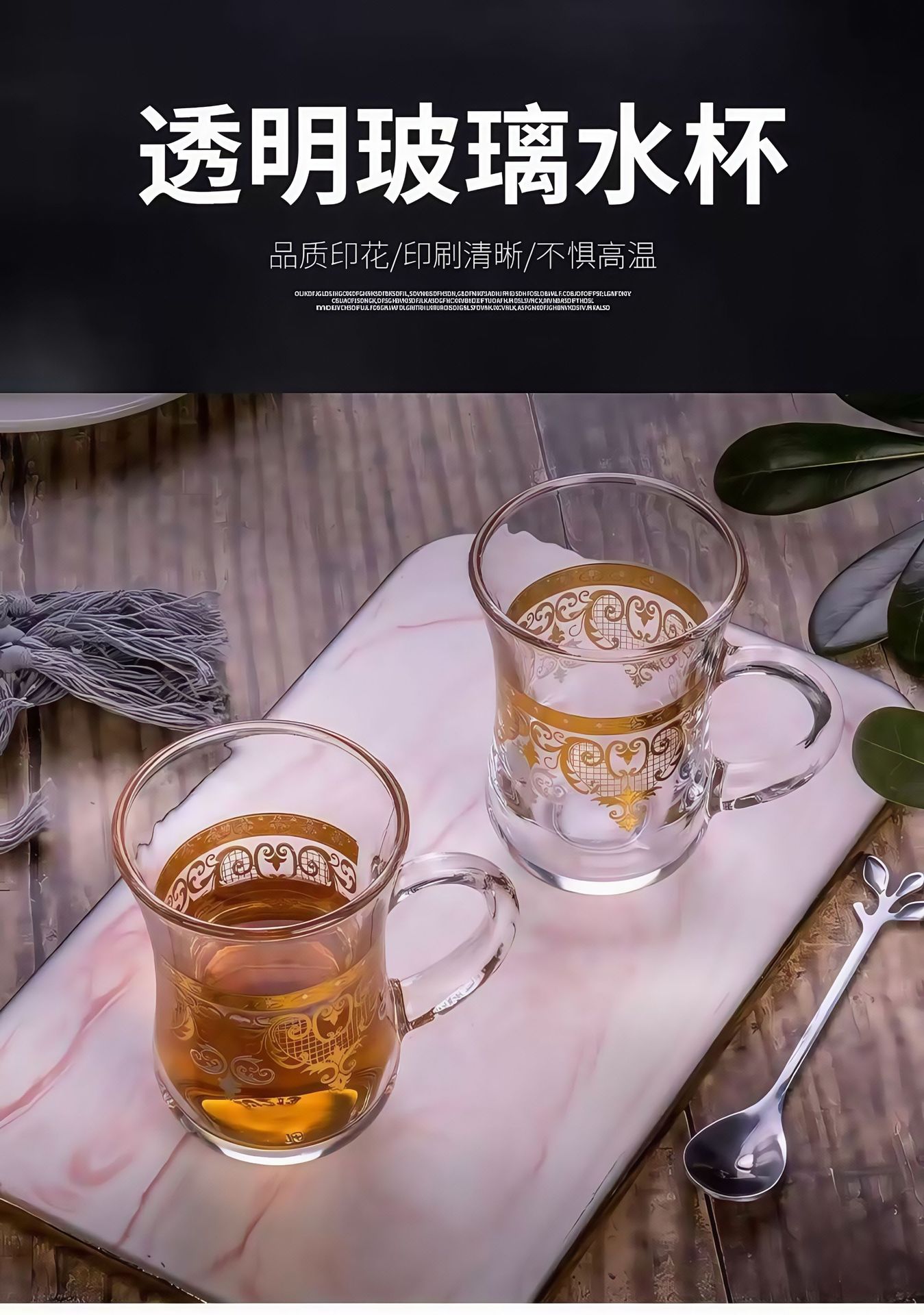 定制创意透明玻璃水杯工夫茶杯玻璃杯烫金浮雕花玻璃咖啡杯酒杯