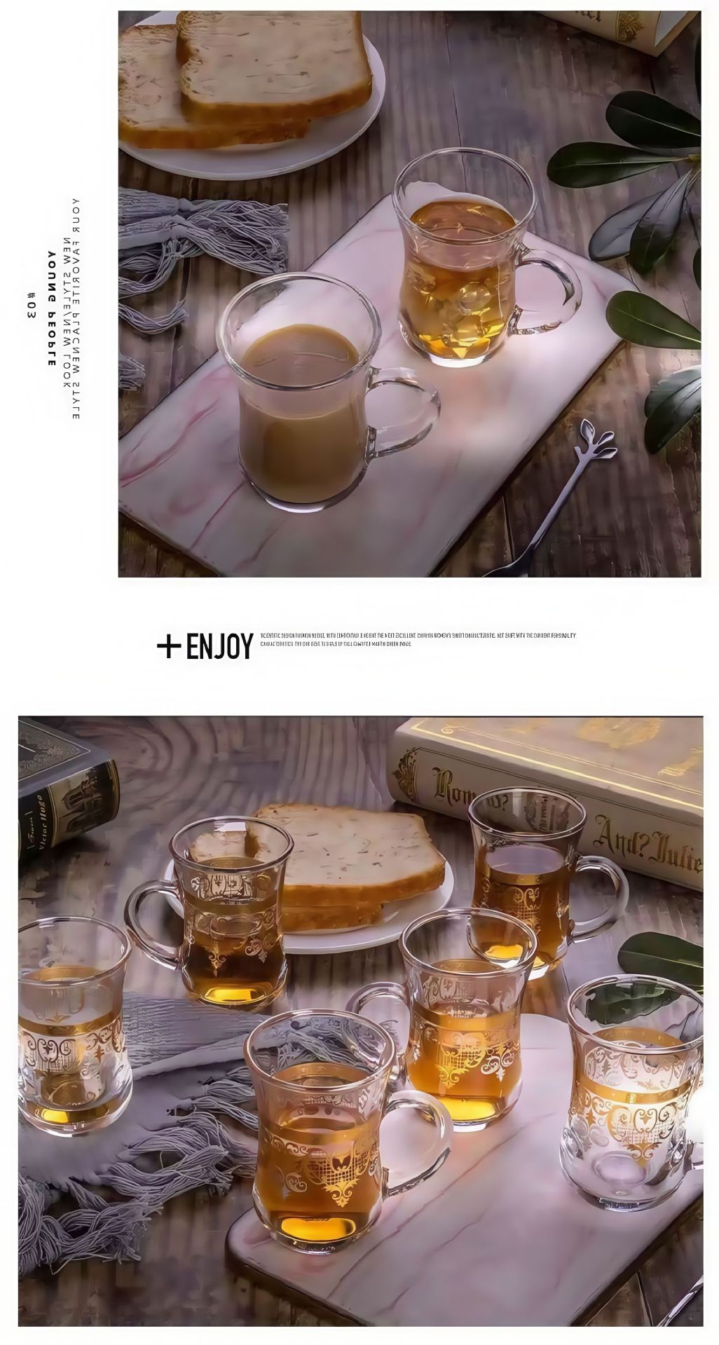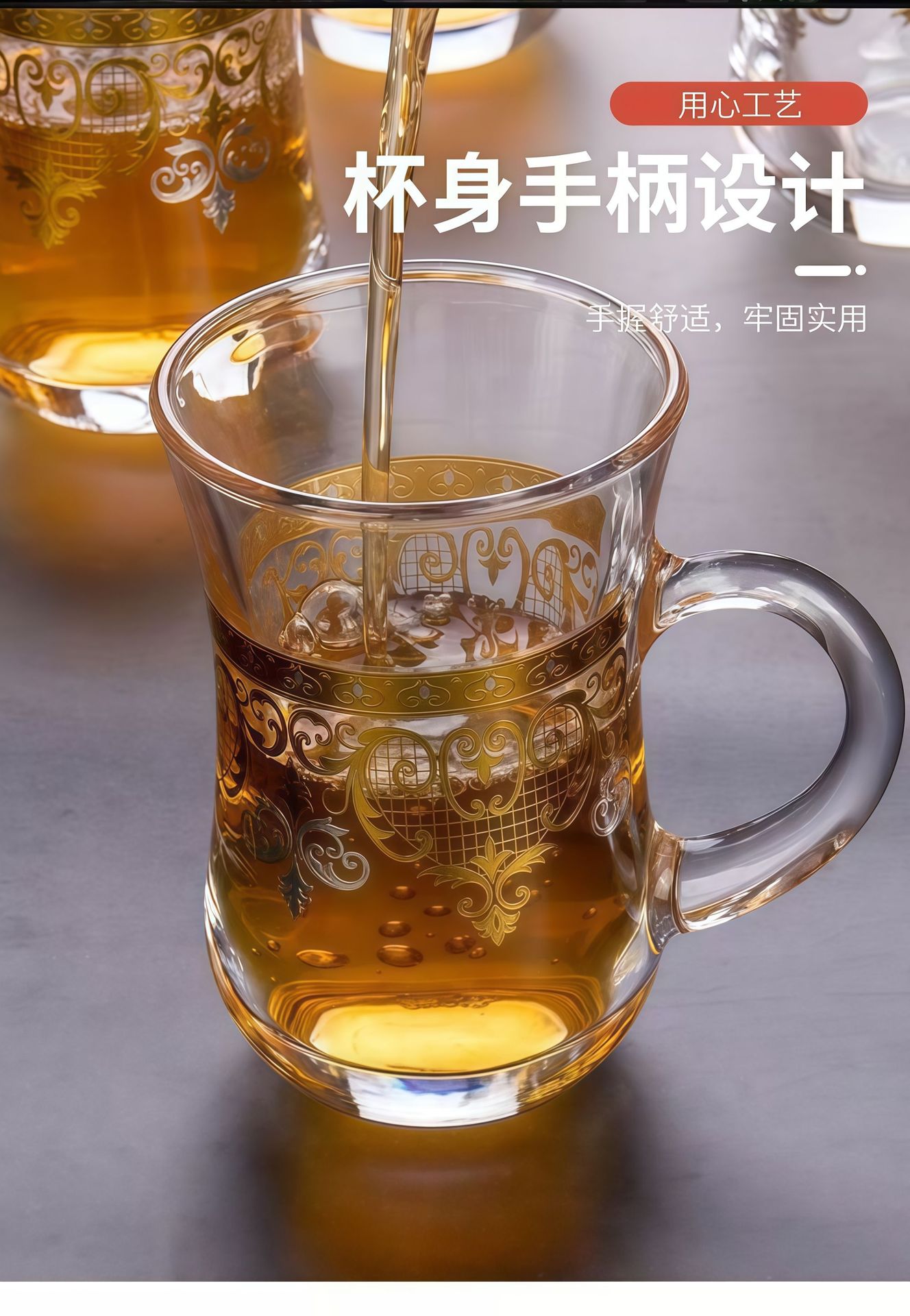国境を越えた新商品コーヒーカップ、透明ガラスカップ、金色の花柄、淹れたて水カップ、既製品、ハンドル付き、夏らしいシンプルデザイン