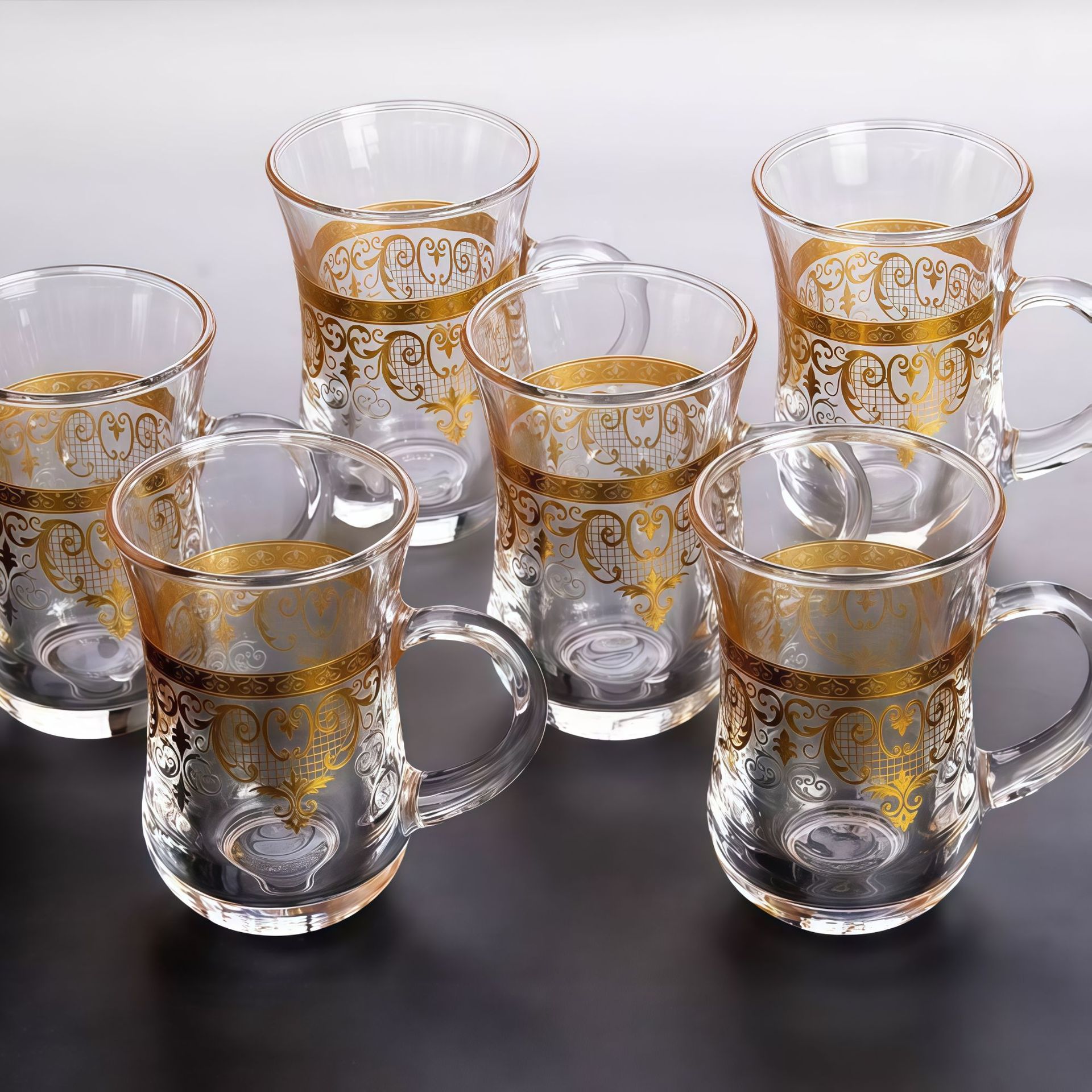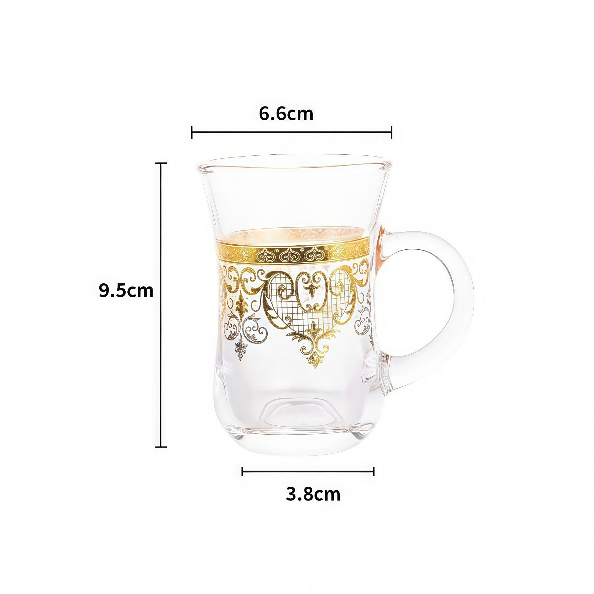 中東トルコの特別な金箔押しの豪華なガラス製コーヒーカップ、ソーサー、ティーカップ、スプーン、シンプルなギフトボックス入り