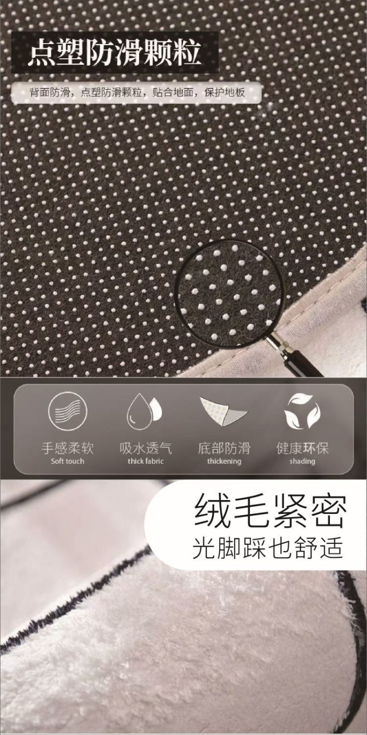 跨境创意卡通欧美植绒簇绒客厅地毯加厚浴室厕所吸水地垫防滑脚垫