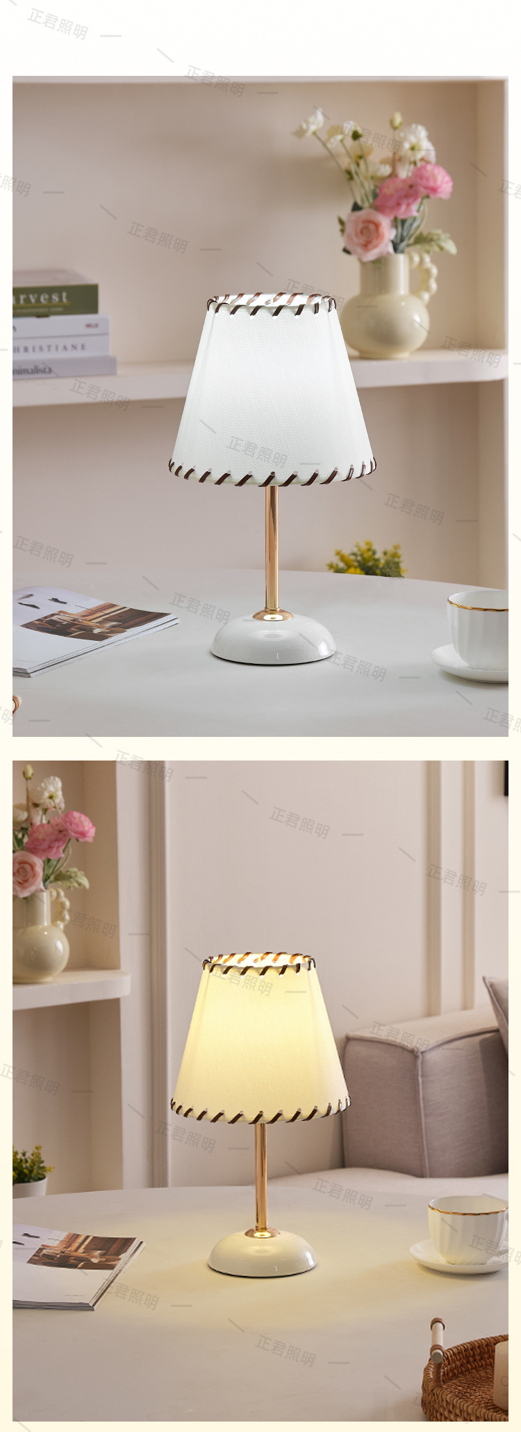 キノコの小さな電気スタンドのクリームのローラーの陶磁器の暖かい雰囲気の長い明かりの目のledランプの寝室はベッドのヘッドライトを飾ります。