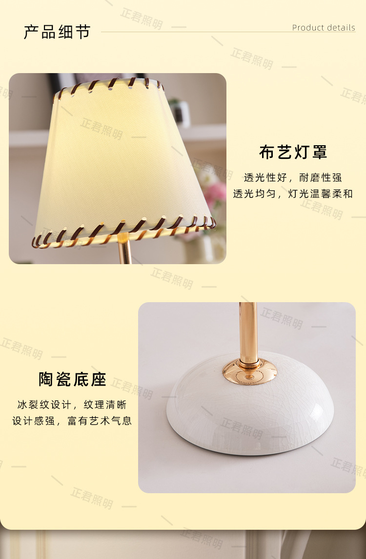 新型現代シンプル風装飾電気スタンド寝室客間置物電気スタンドアメリカ雰囲気ベッドヘッドランプ氷割れ陶磁器