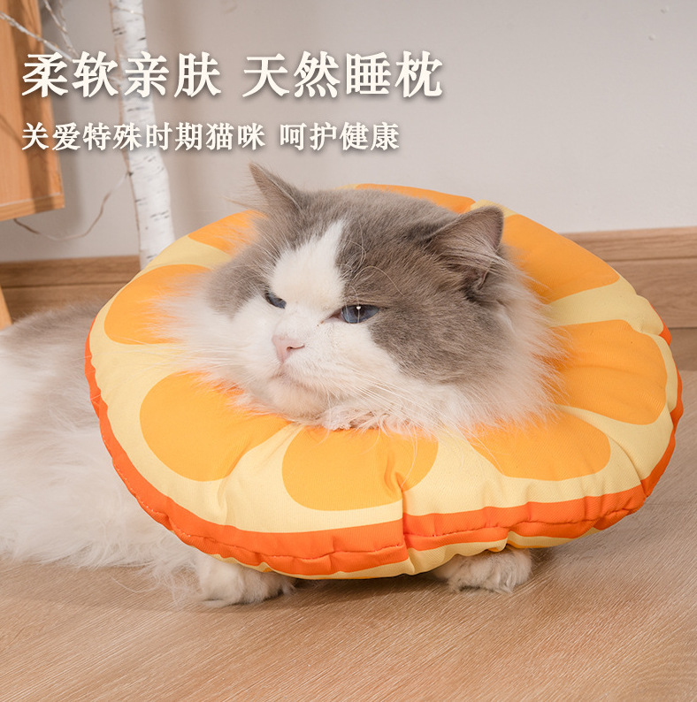 エリザベスリングかわいい猫オレンジ首輪舐め防止防水ソフト犬首輪絶育恥辱リング猫頭カバー